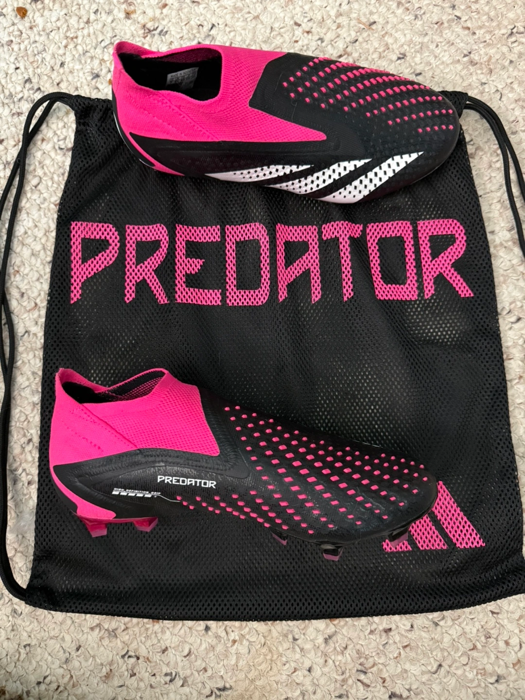 26Selling a pair of Adidas Predator soccer cleats in a striking pink and black colourway! These cleats are designed for optimal performance on the field. The bag is included! These are brand new Smoke free home Pick-up Unicity Condition: New