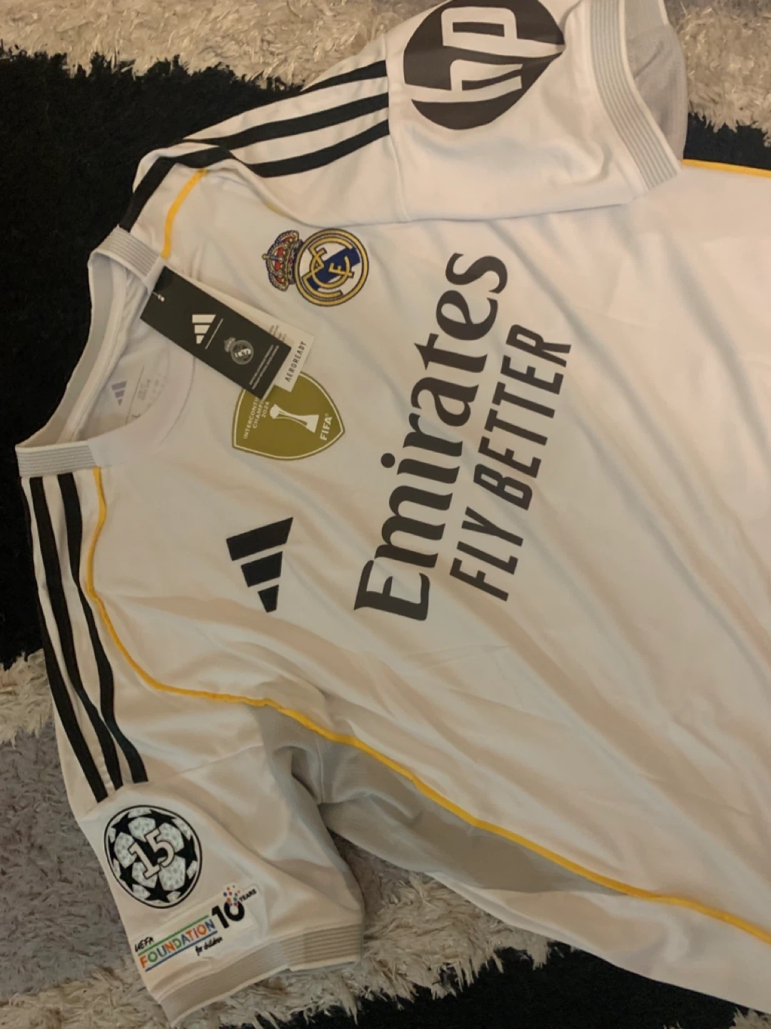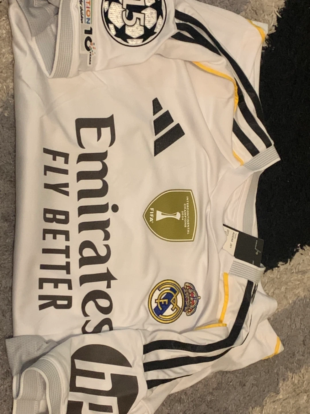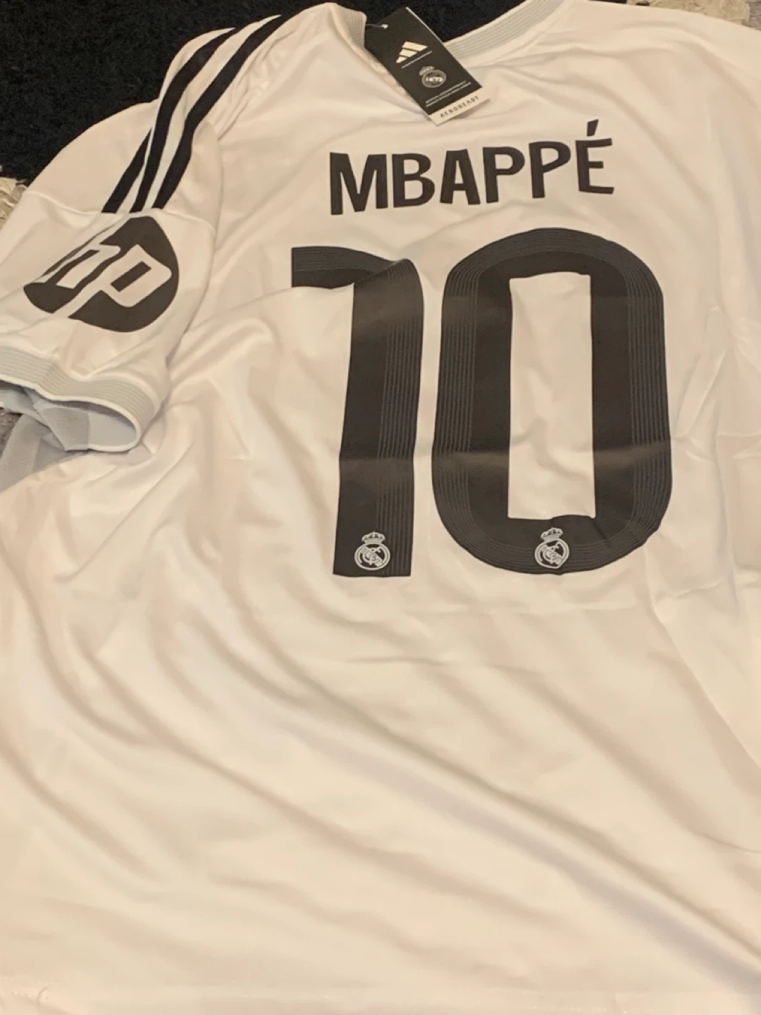 15Selling a brand new Adidas Real Madrid jersey with Mbappe #10 on the back! It's a size large and in perfect condition. Features the Emirates Fly Better logo and the Real Madrid crest. A great jersey for any Real Madrid fan!