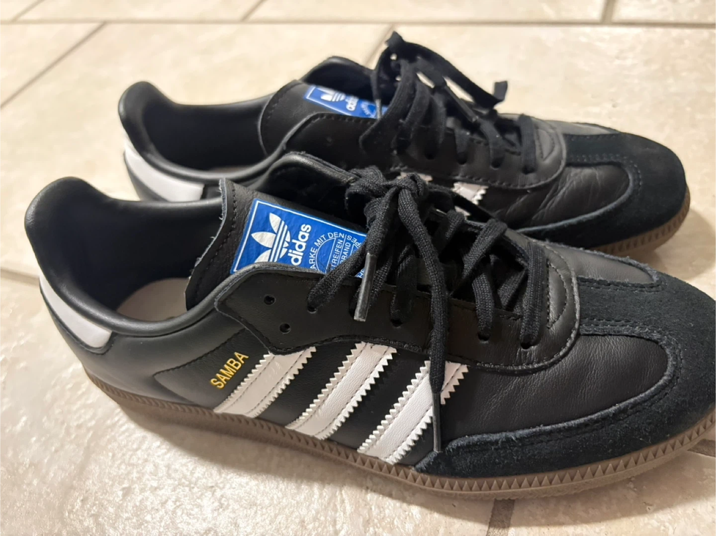 70Selling a pair of Adidas Samba sneakers in black! They're in great shape, only wore once, for a day. The size is US 7.5 women’s but pic says US 6 bc they are from kids section