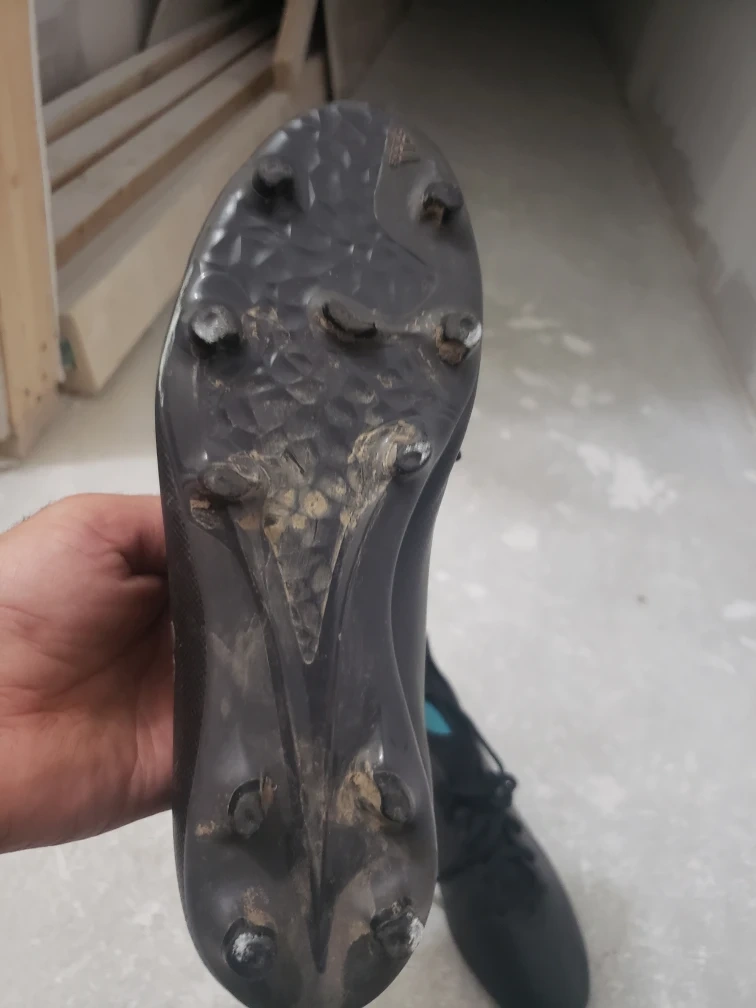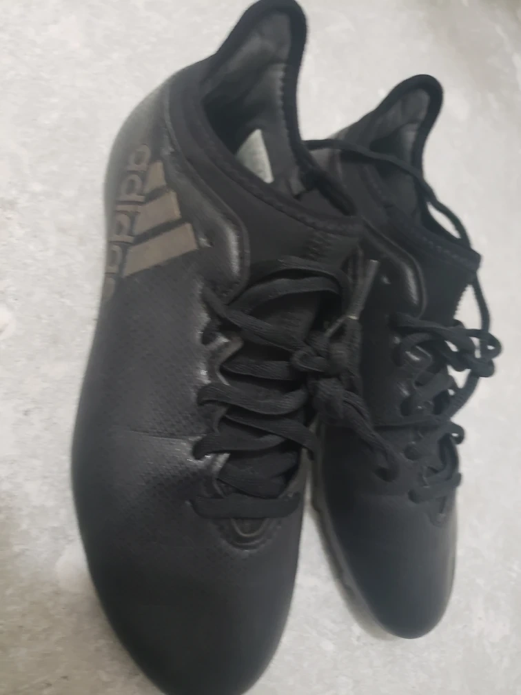 Black Adidas soccer cleats in size 4.5. Made in Cambodia.