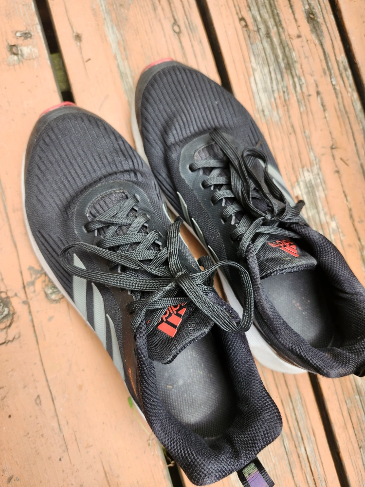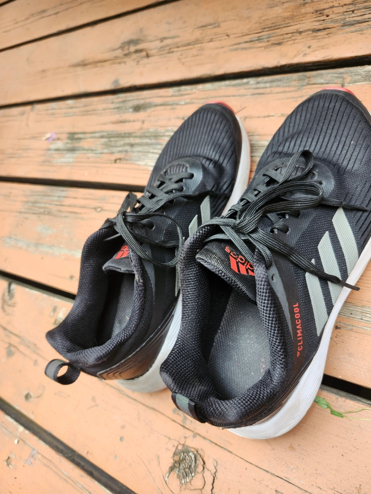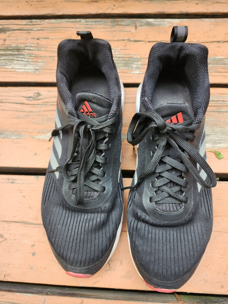 203Selling a pair of Adidas Solarglide 5 running shoes in men's size 10. They're black with red and grey accents. Perfect for running or everyday wear!