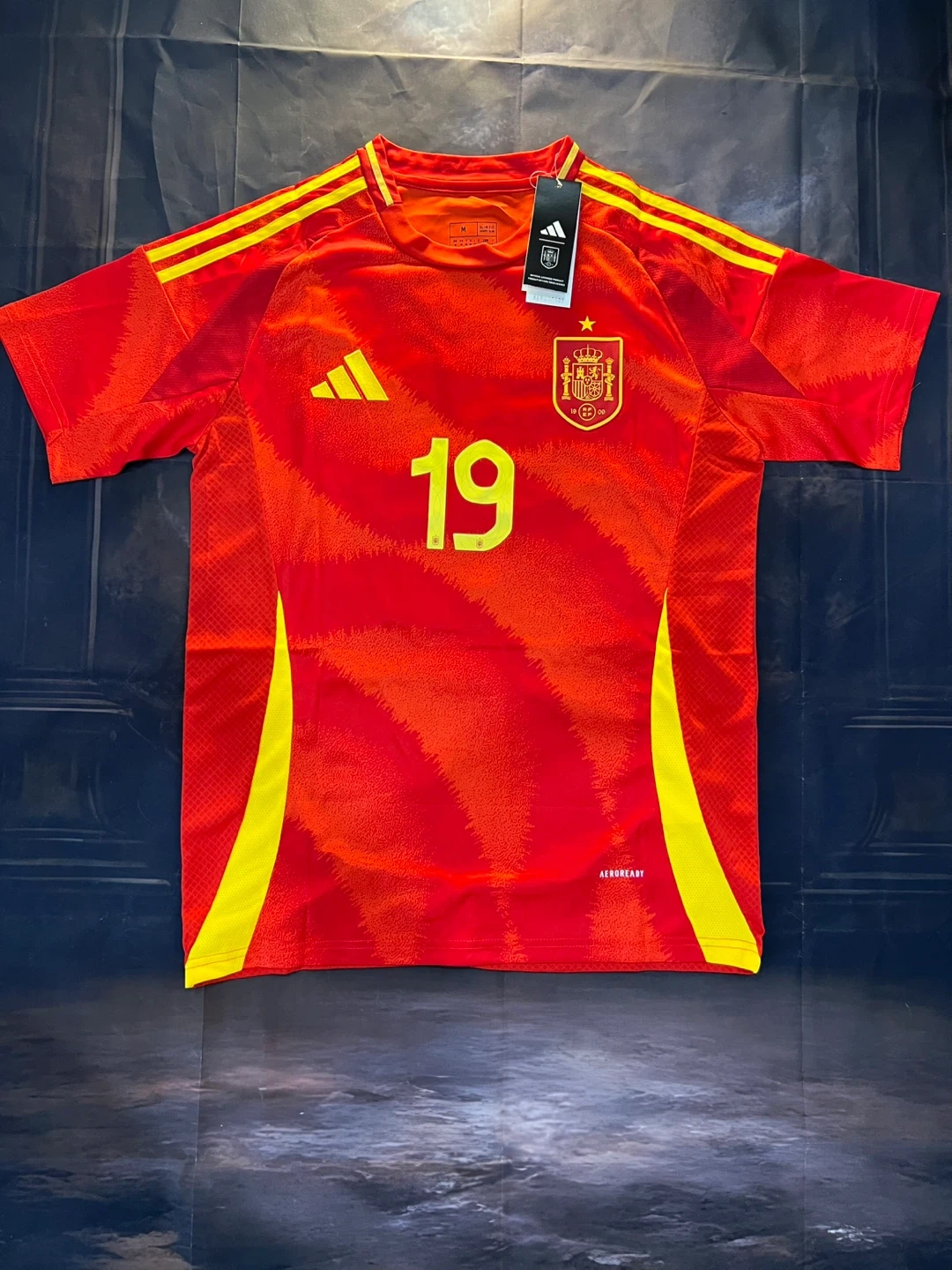 20Selling a brand new Adidas Spain Lamine Yamal #19 soccer jersey! It's in excellent condition and ready for a new home. The jersey features the iconic Adidas design with the Spanish national team crest and Lamine Yamal's name and number on the back