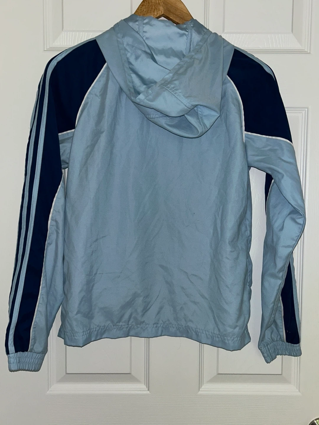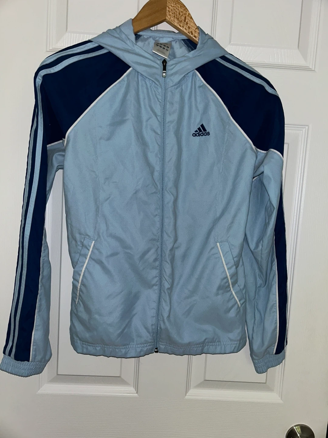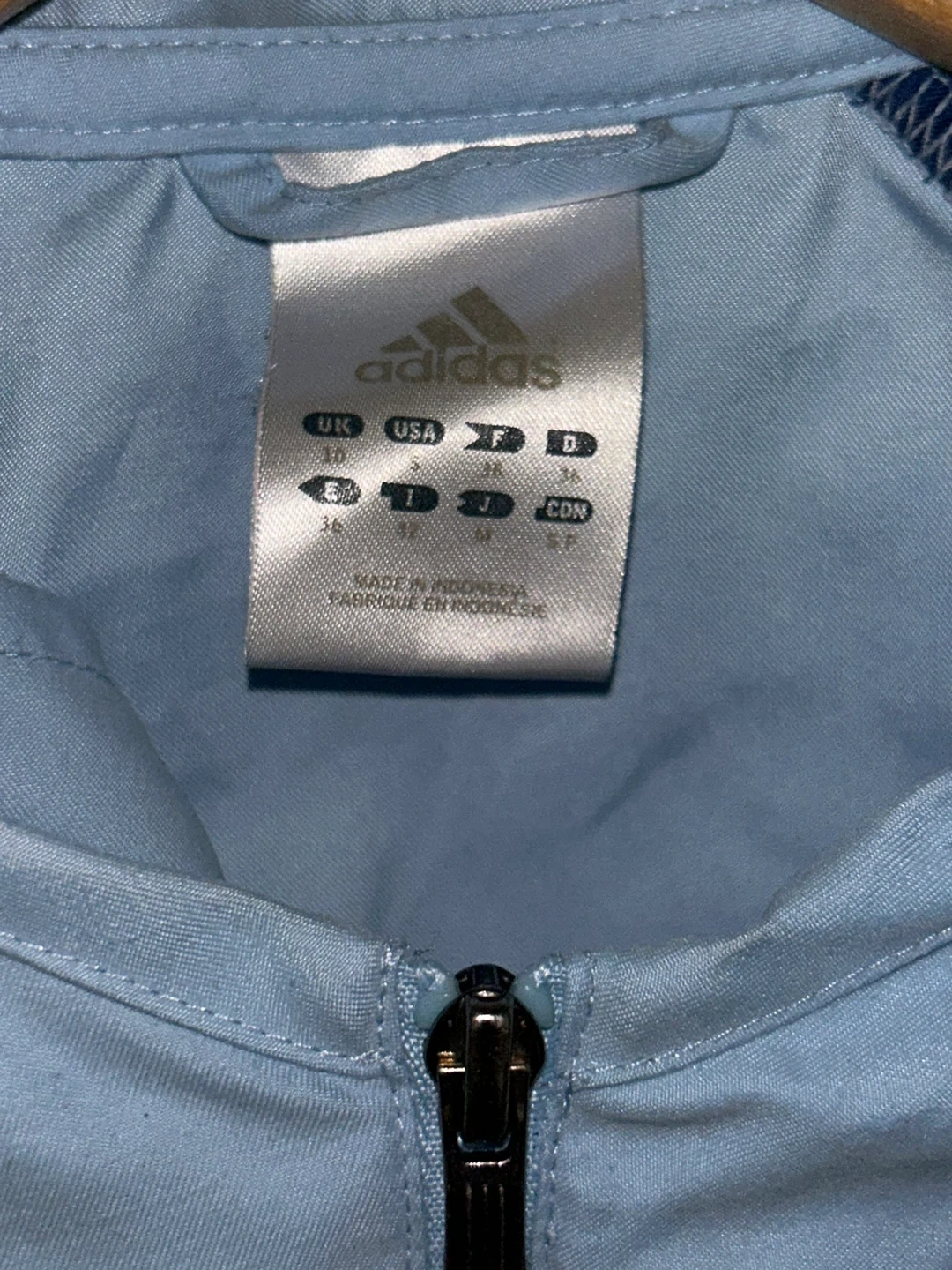 Gently worn, good used condition, blue adidas jacket woman’s size small.