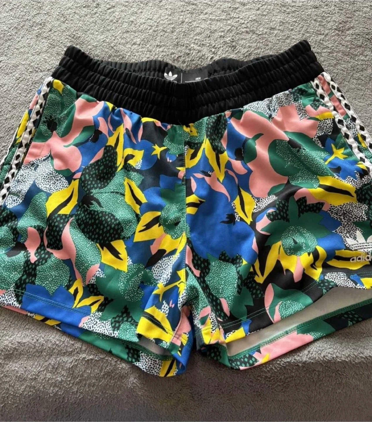 Selling a bundle of athletic shorts, perfect for workouts or casual wear! There's a pair of Adidas shorts with a fun floral print, and two other pairs of comfortable athletic shorts. All are in great condition and size large.