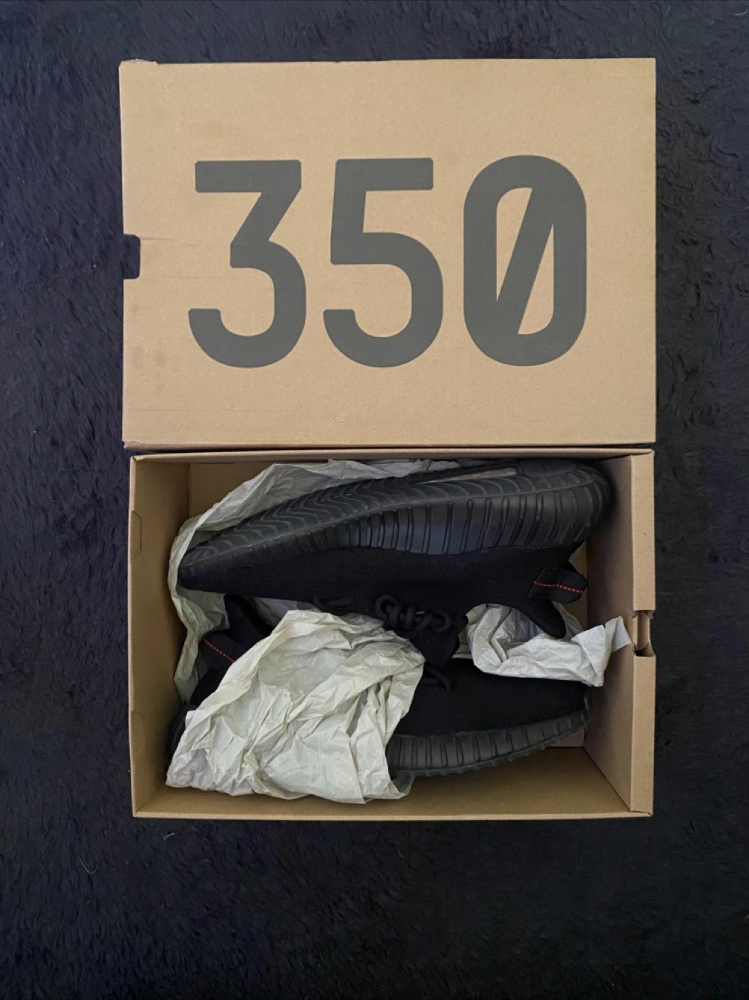 Selling a pair of Adidas Yeezy Boost 350 V2 in black. Comes with the original box!