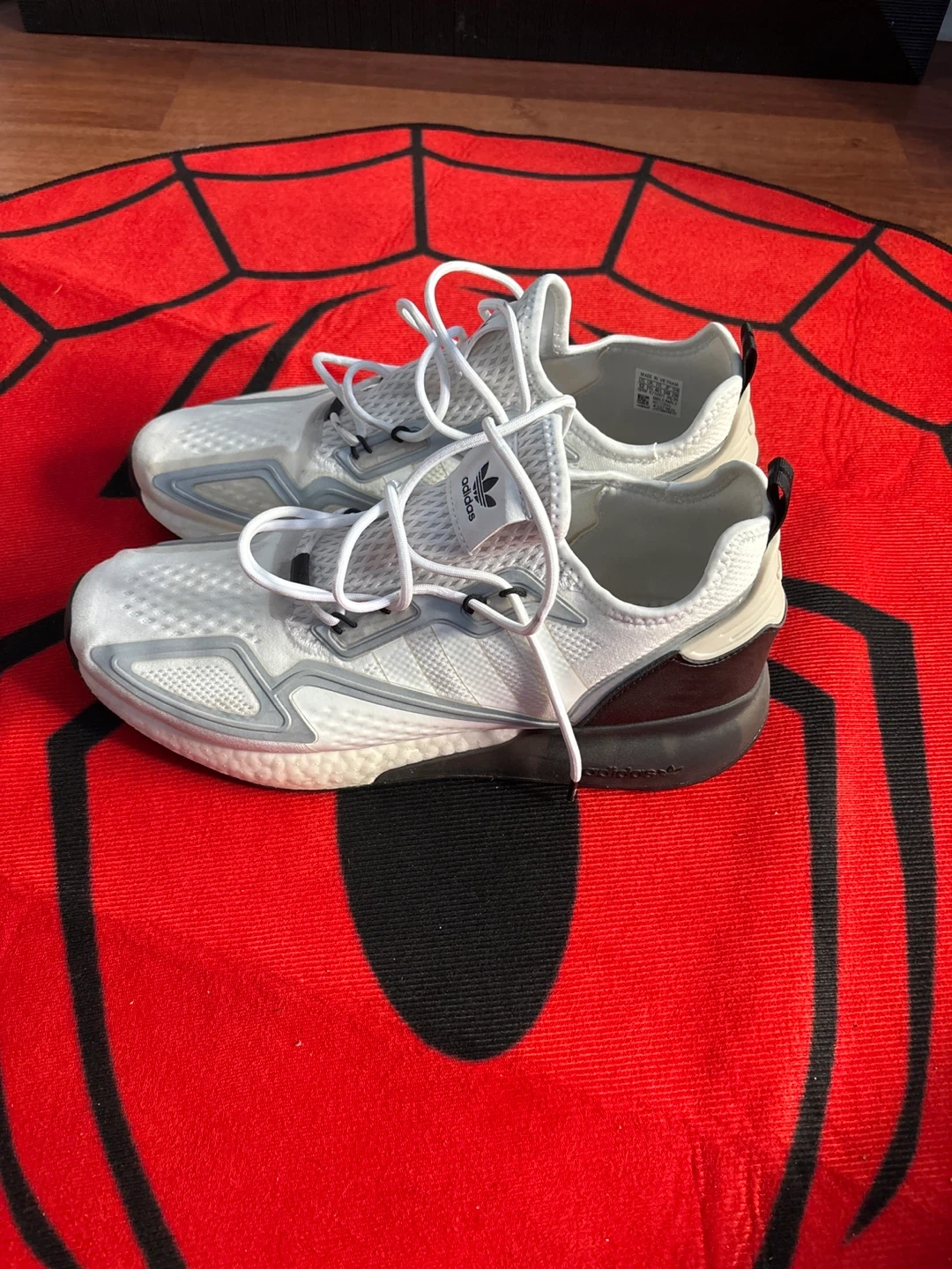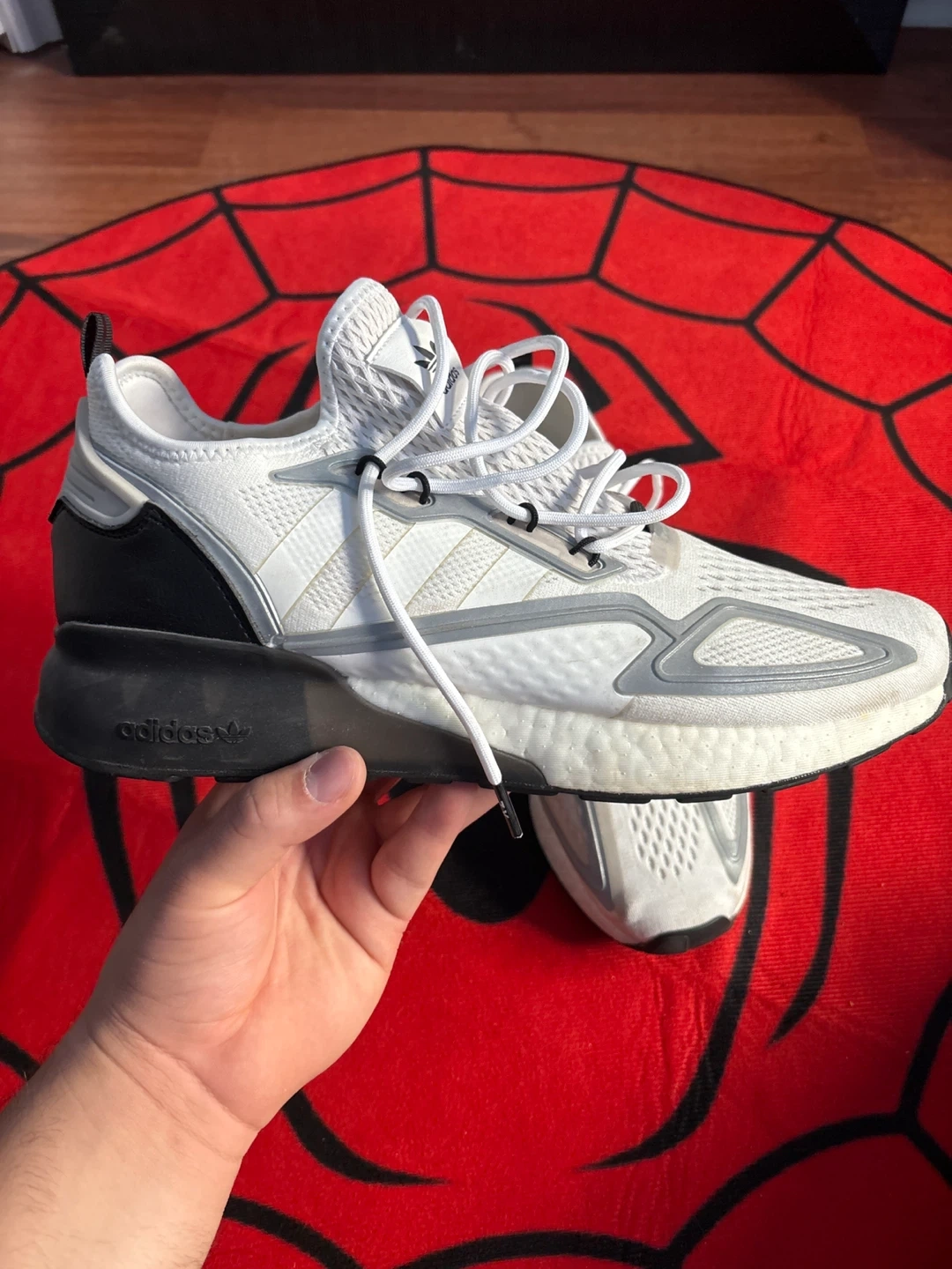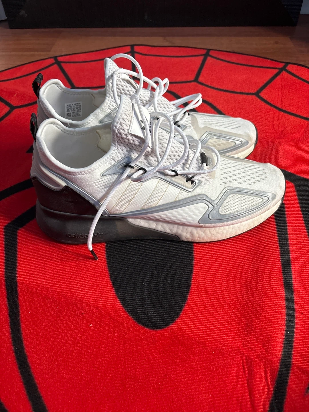 Selling a pair of Adidas ZX 2K Boost sneakers in white Size 12. They're in good condition and ready for a new home! These sneakers are super comfortable and stylish, perfect for everyday wear or hitting the gym. Check out the photos for details!