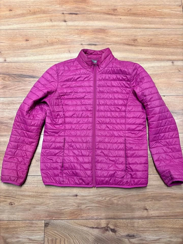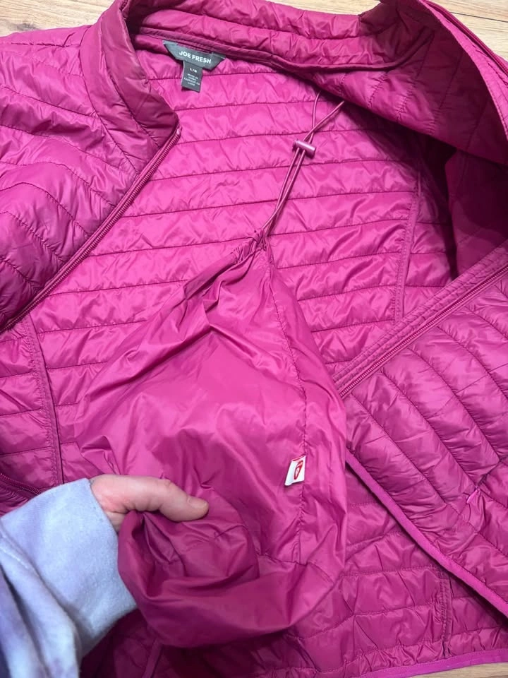 Only worn a handful of times. This Joe Fresh light puffy jacket is a size large. It packs very small into an attached bag. Pick up is available near 120th and 64th in Surrey or near the hospital in Richmond.