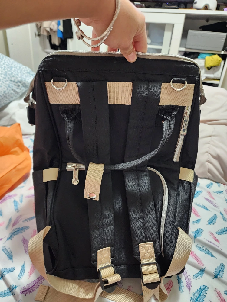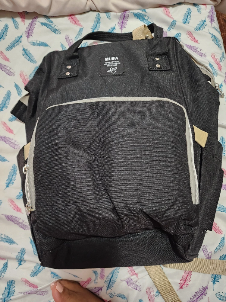Large capacity diaper bag backpack. Multiple pockets and compartments. Great for organizing baby essentials. Neutral colours. Sturdy straps and handles.