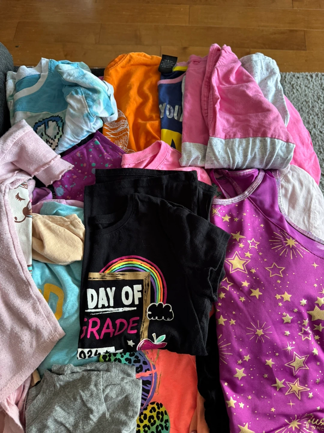 A bundle of girls' clothing with various colours and designs! There are t-shirts, tank tops, and more. Perfect for everyday wear! Size 10-12 mostly but there are a couple 7-8. All in EUC some were never even worn as my daughter outgrew.