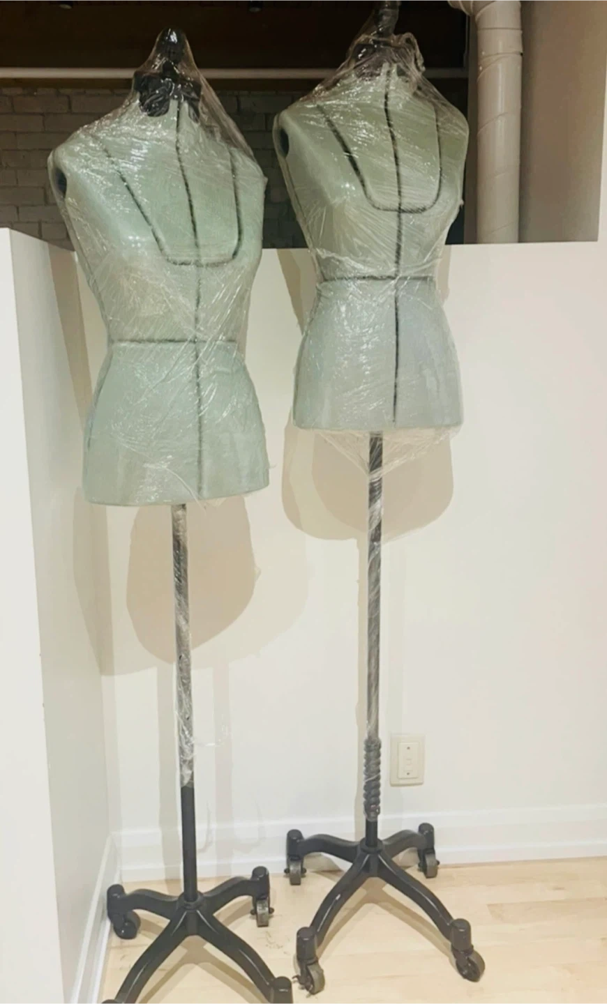 217Female Disolay Dress Form Mannequin - Clothing Store Fixture Black Metal Rollong Base Adjustable Professional Grade 2 Available - Prefer to Sell as a Set Pale Blue “Fuzzy” Material Mint Condition! Clean, Smoke Free, Pet Free, Pest Free Home