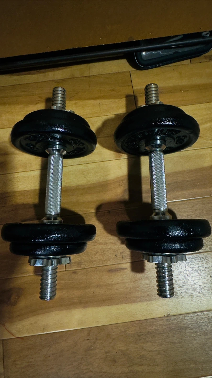 42Selling a set of adjustable dumbbells! Great for home workouts and building strength. They show some signs of use but are still in good working condition 40lb