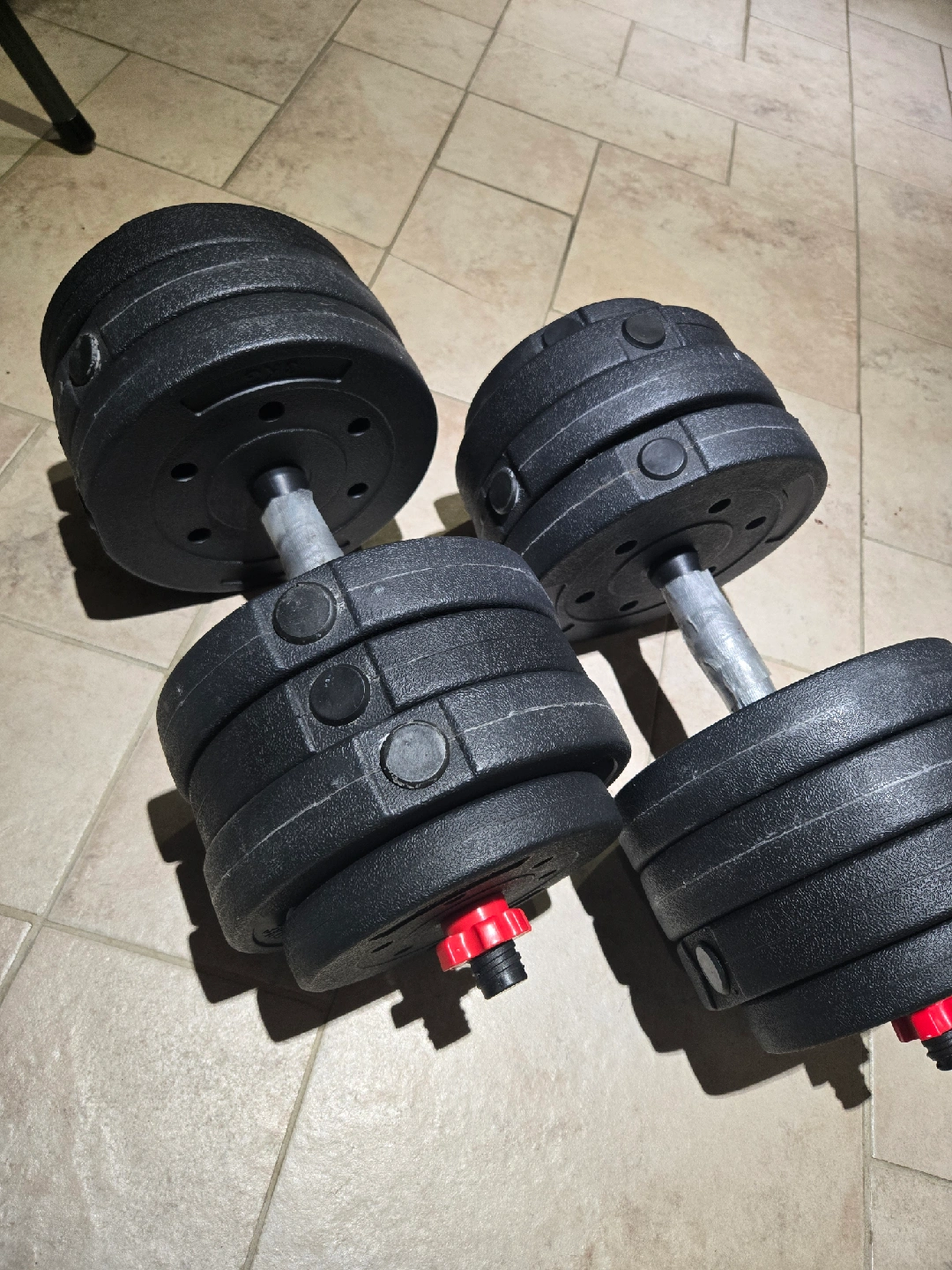0Selling a pair of adjustable dumbbells. They're in great shape and ready for your home gym setup! Perfect for a variety of exercises and fitness levels handles are taped for comfort