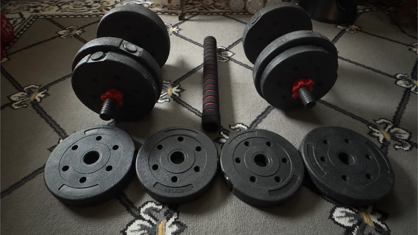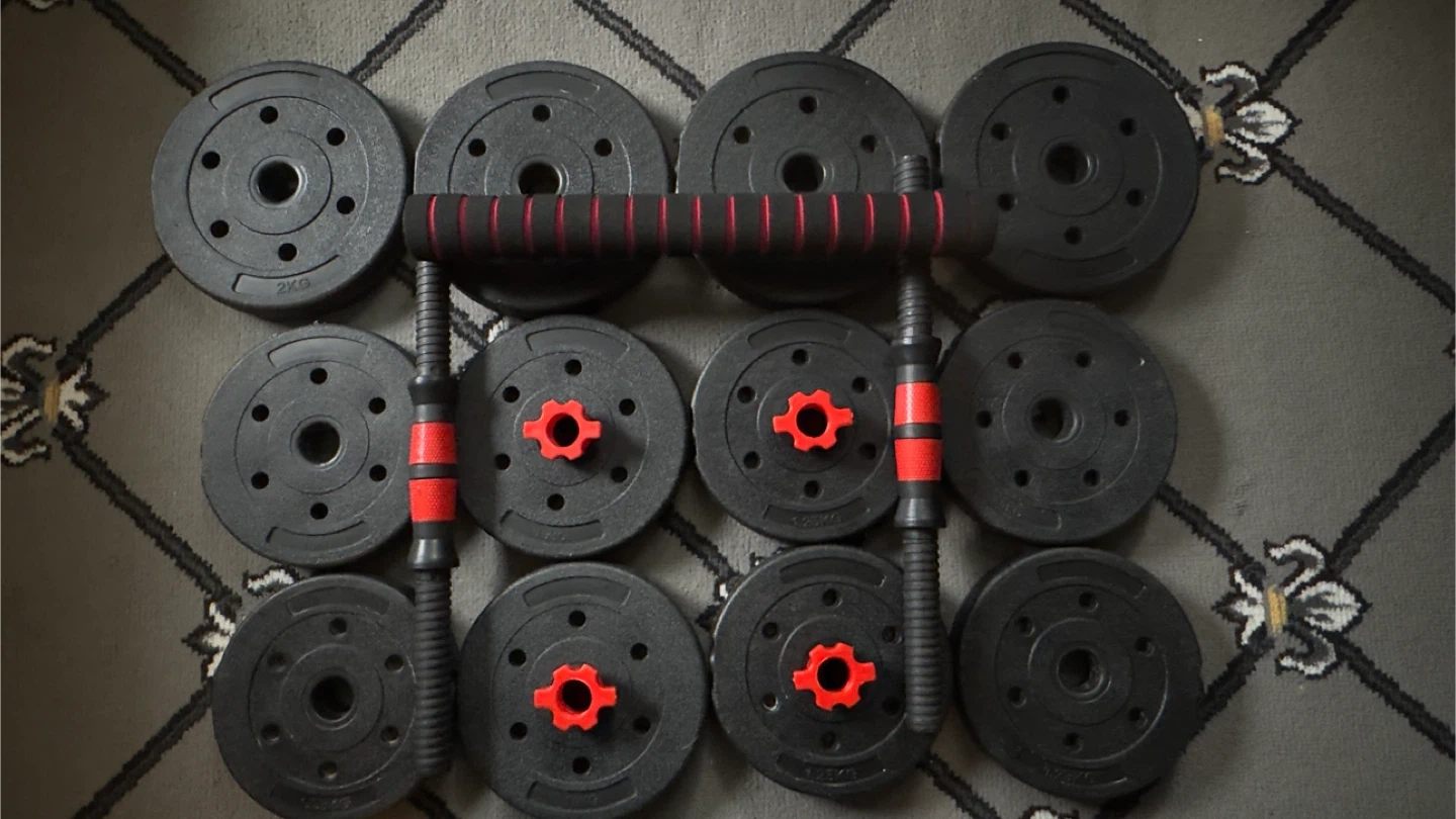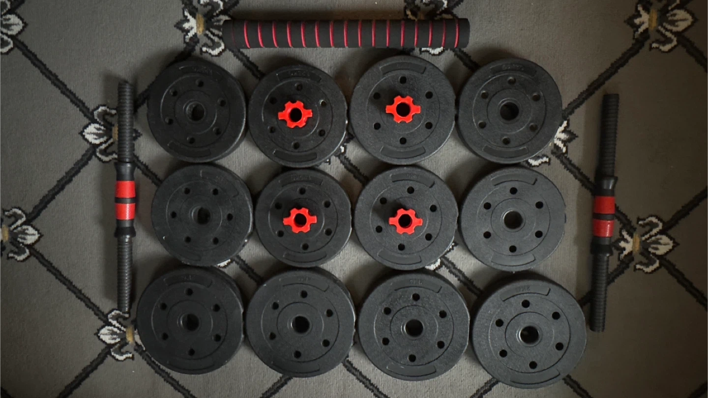 Get ready to train with weights with this adjustable dumbbell set! This set includes multiple weight plates and connecting bars, so you can adjust the weight to your liking and it's still multifunctional, ideal for home workouts! Cash