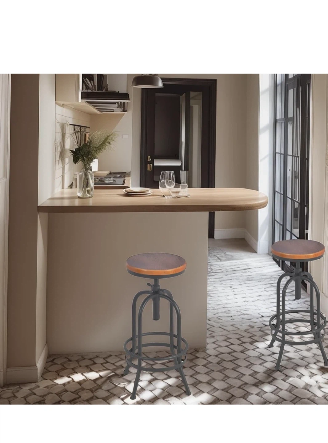10Selling an adjustable height bar stool! The dimensions are: seat diameter 35cm, height adjustable from 26-32 inches, and a base width of 19 inches. The footrest is 9.8 inches from the ground. Great for a kitchen counter or bar area