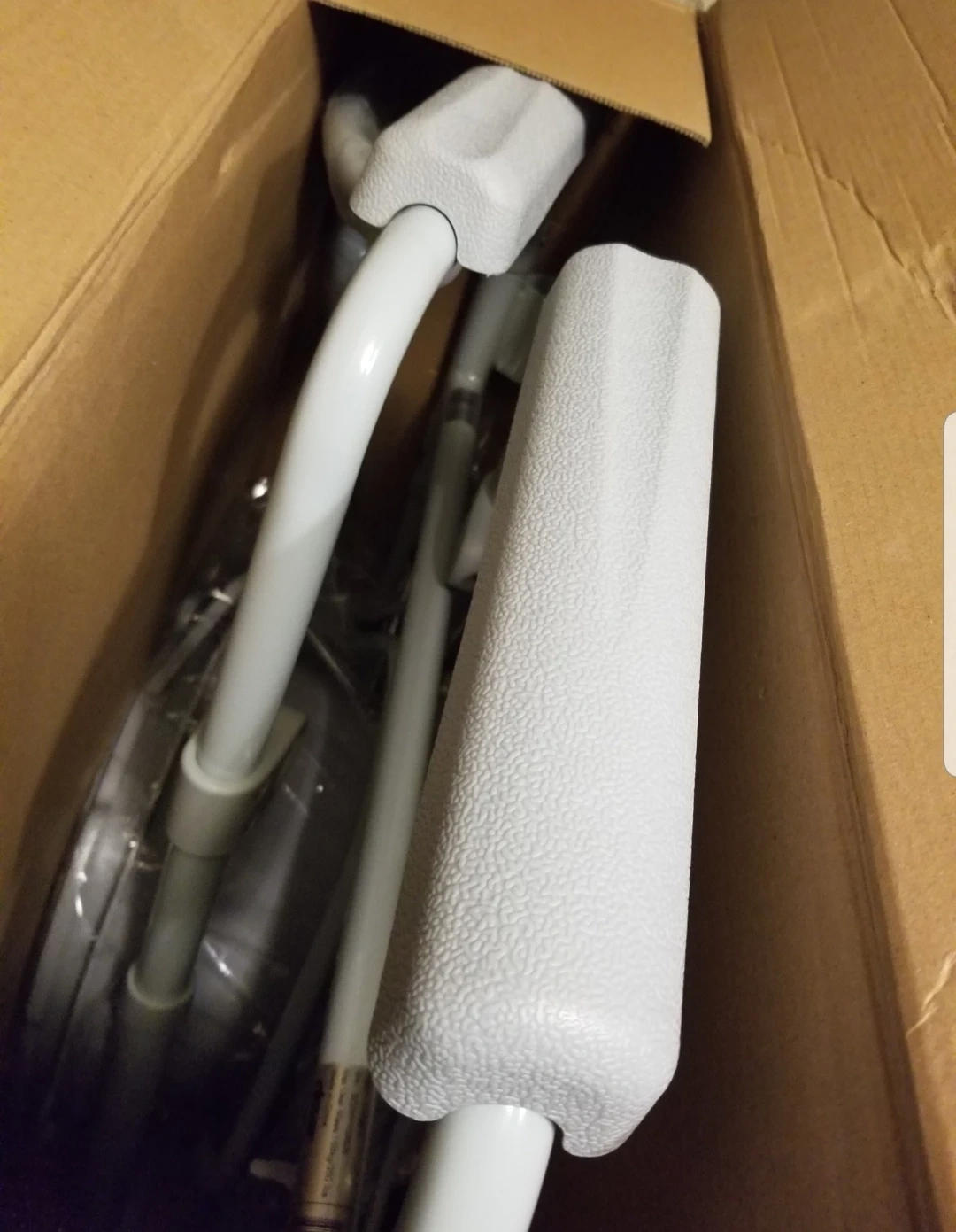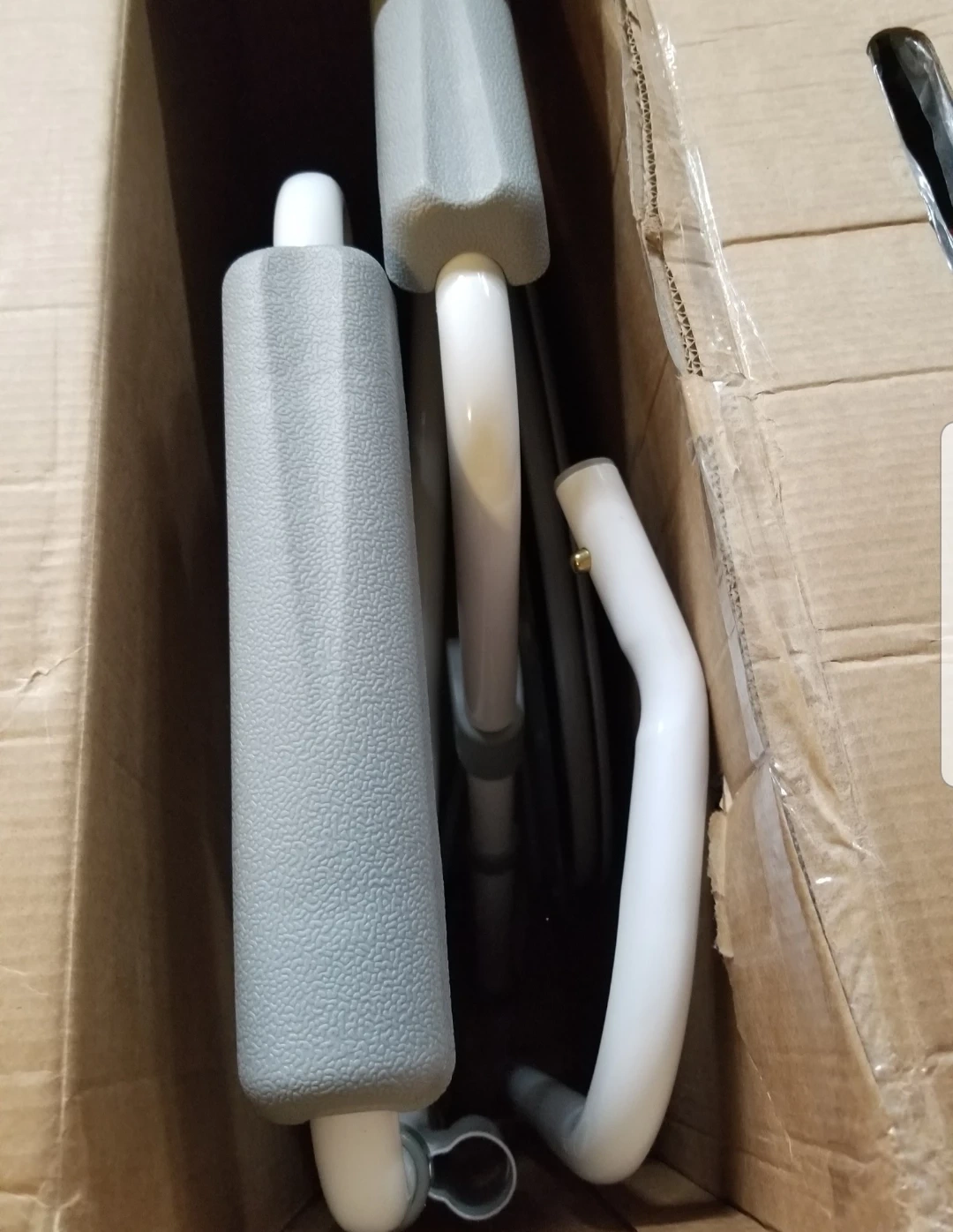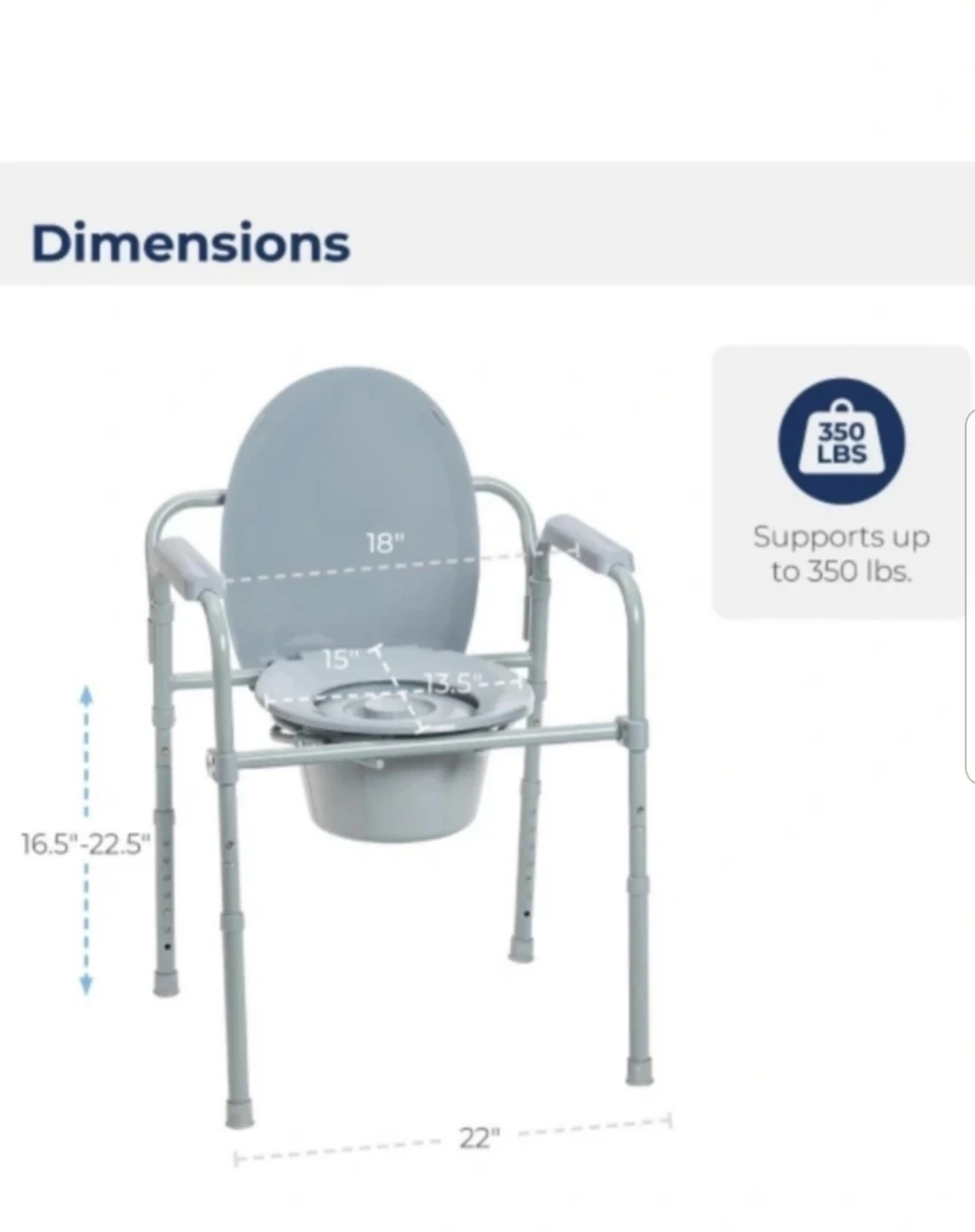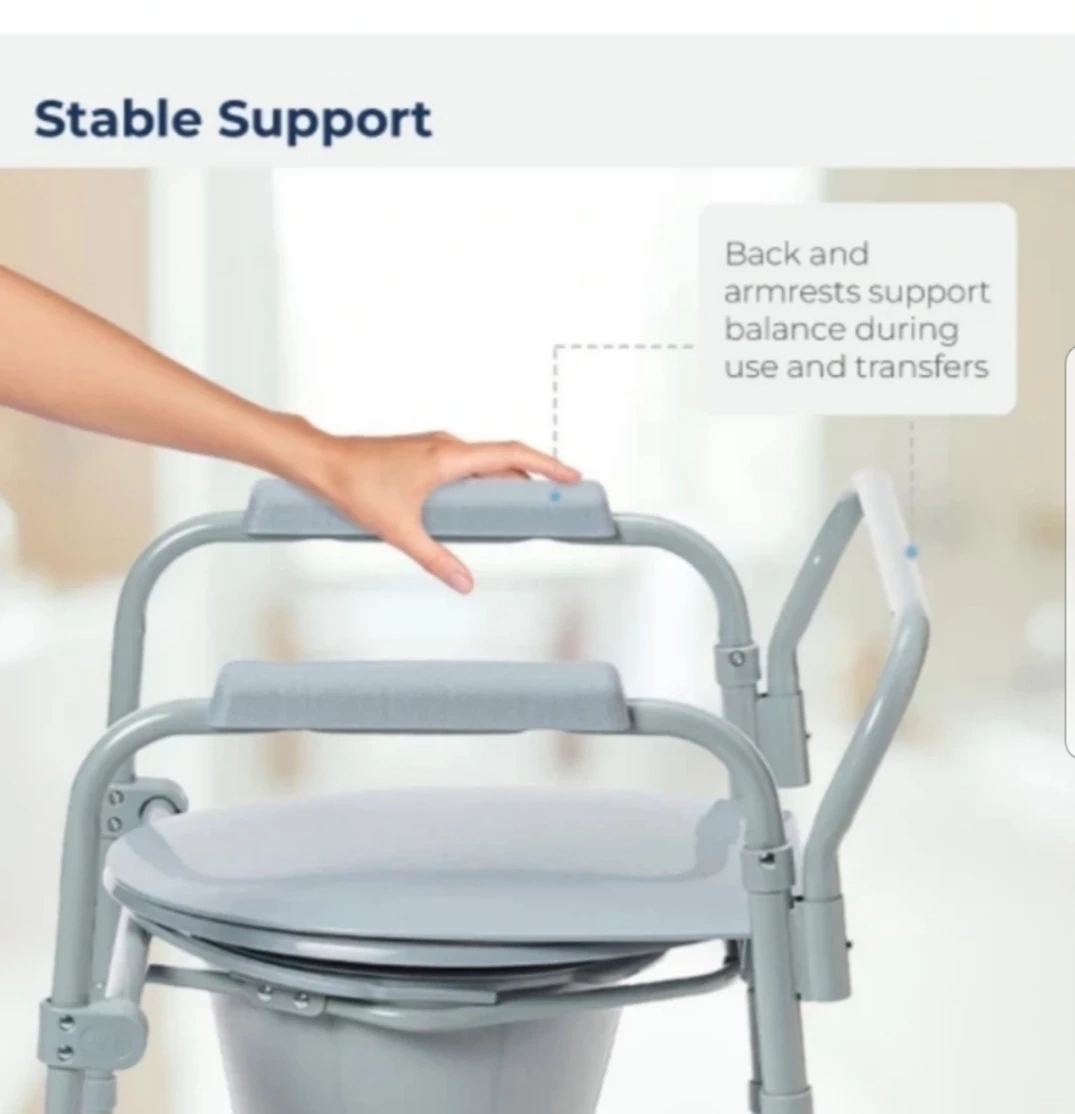 Foldable commode, sturdy steel frame. Height adjustable, 16-22 inches. Supports up to 350 pounds. Grey plastic seat and pail. Easy to clean. brand new xp pick up Bovard and Dixie area of Brampton