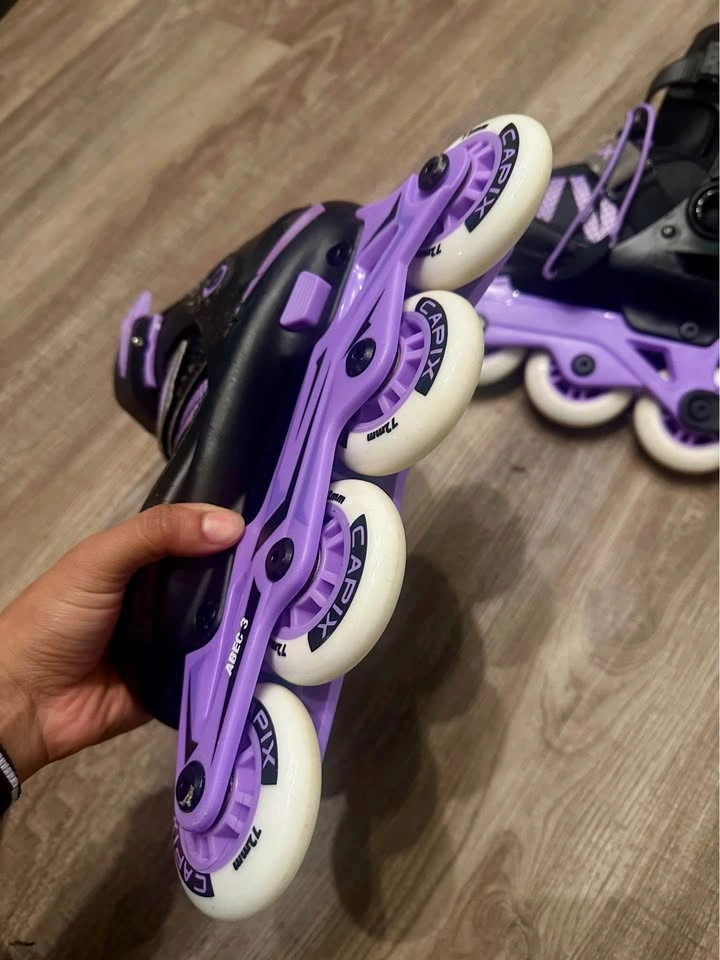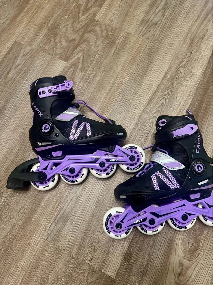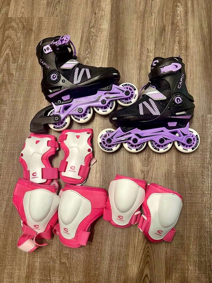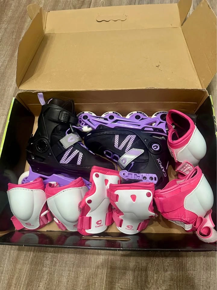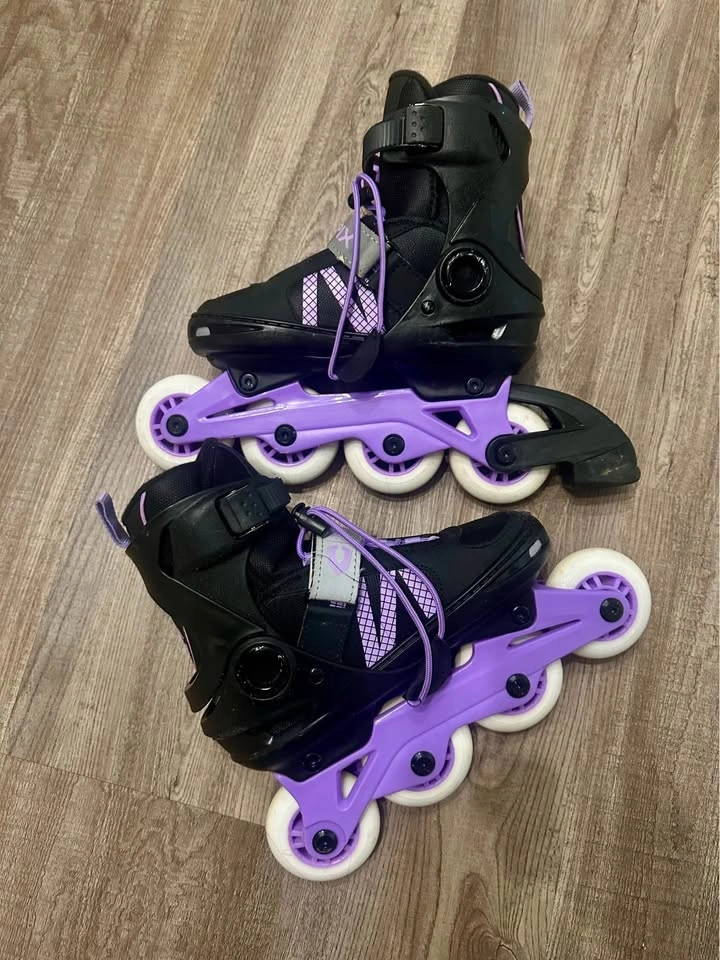 Used a few times, everything is practically new, includes: Original box Skates Pad set Adjustable inline skates (1 to size 4) Paid all together for $100 + taxes