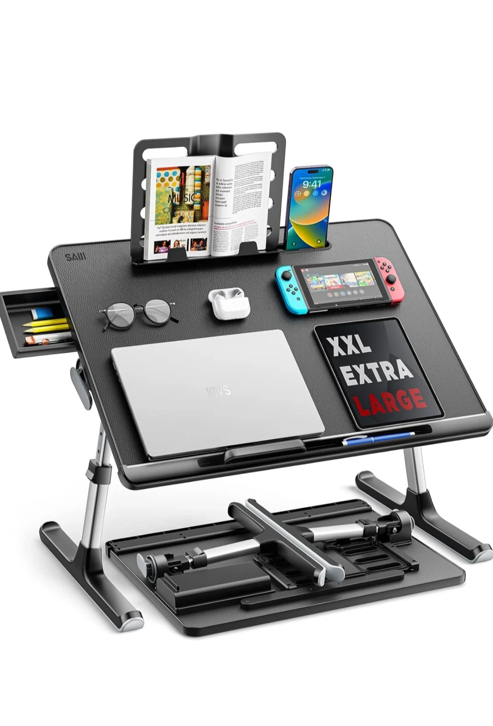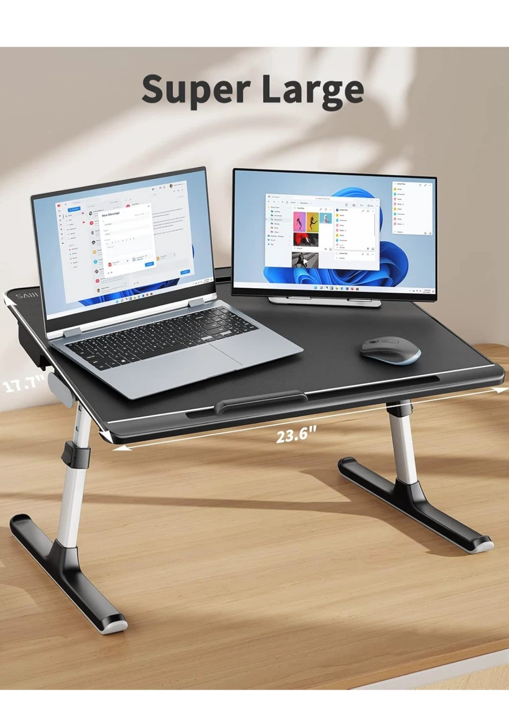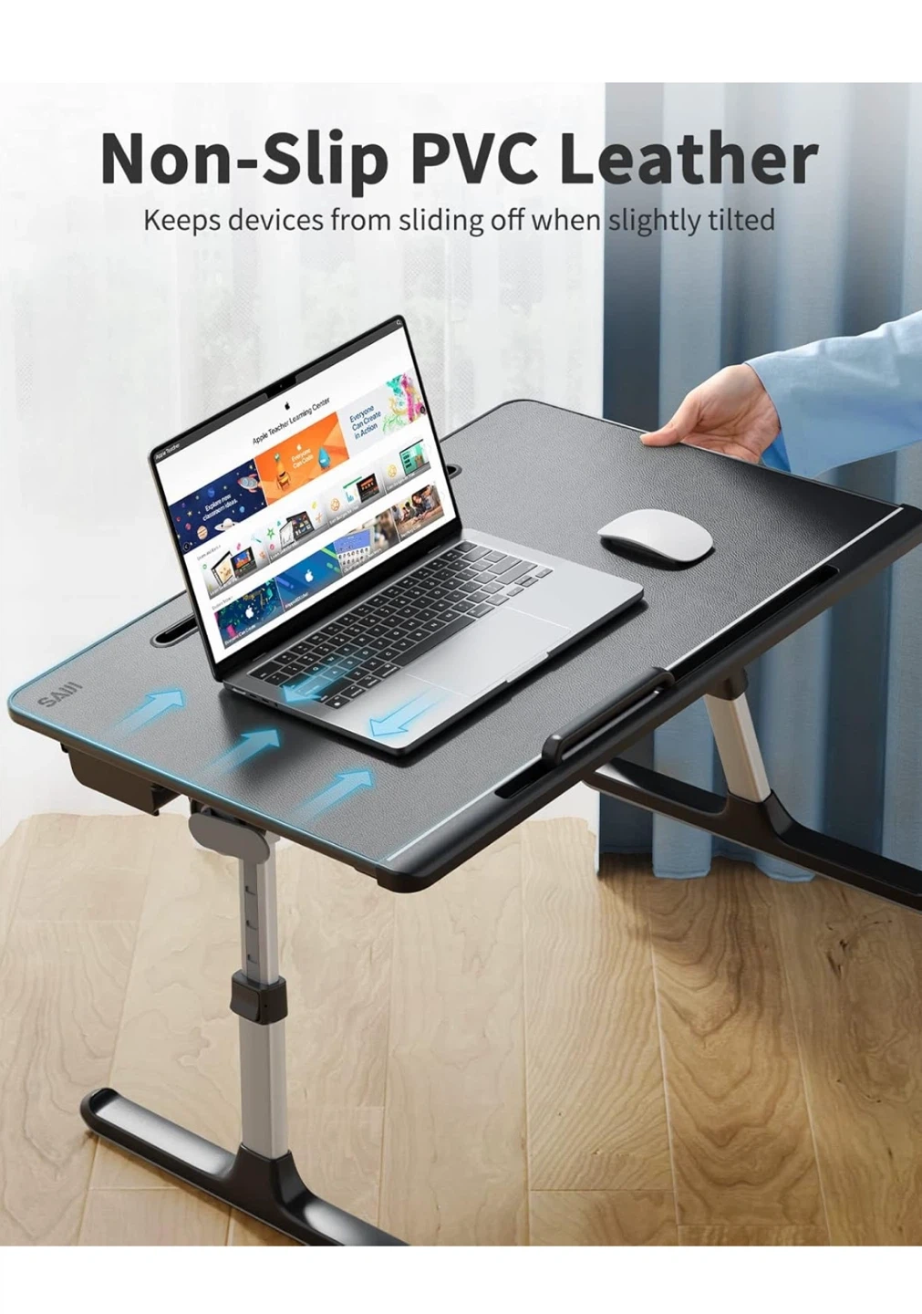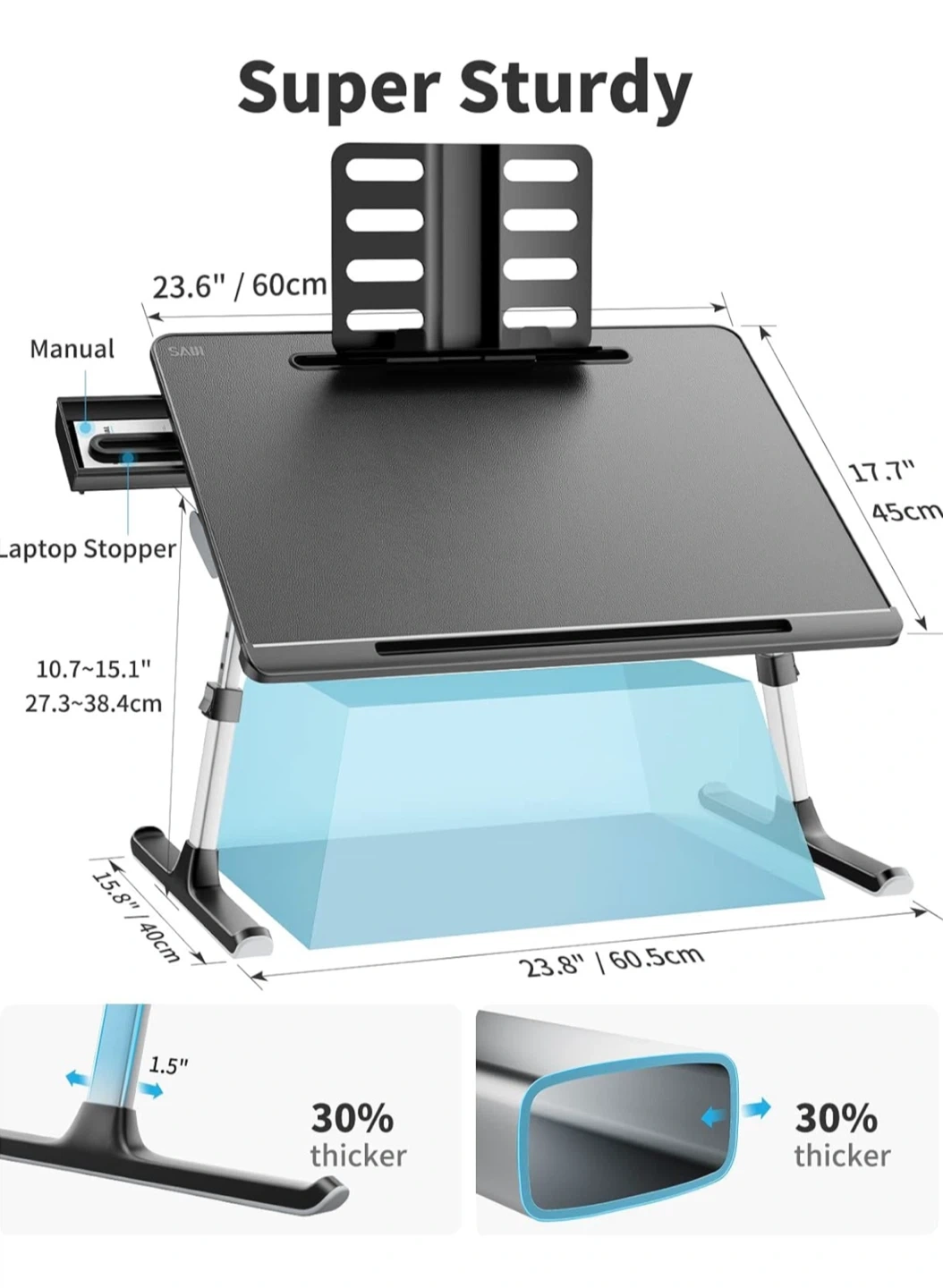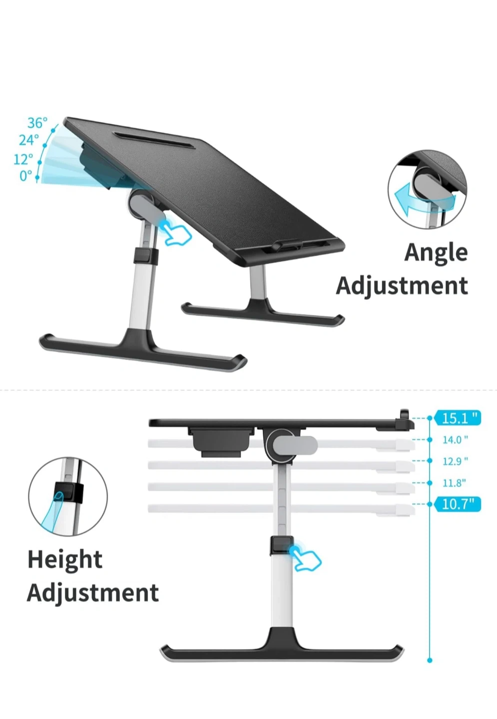 22This adjustable laptop bed desk is perfect for working or relaxing in bed or on the couch! It features: - Angle and height adjustments - Super sturdy construction - Non-slip PVC leather surface - Dimensions: 23.6" / 60cm x 17.7" / 45cm - Height adjustable from 10.7" to 15.1" (27.3cm to 38.4cm)
