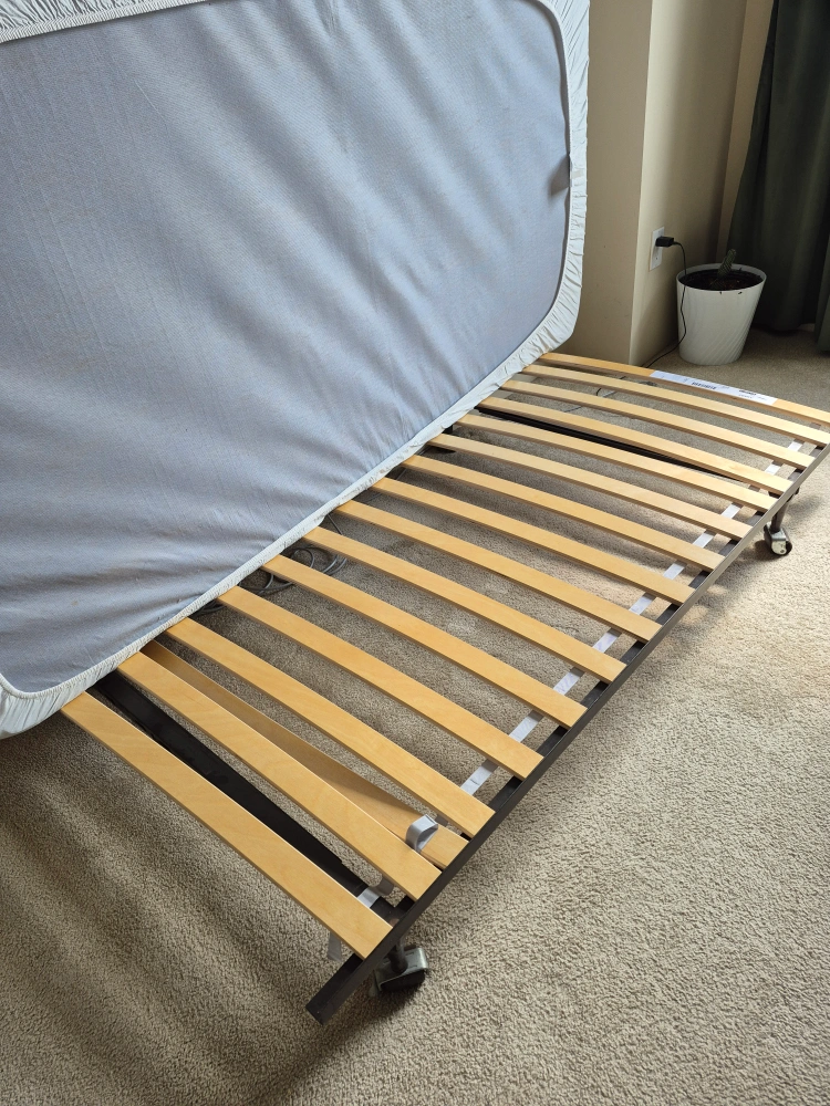 31Selling a folding bed frame with wheels! It's super convenient for saving space and easy to move around. Great for small apartments or guest rooms