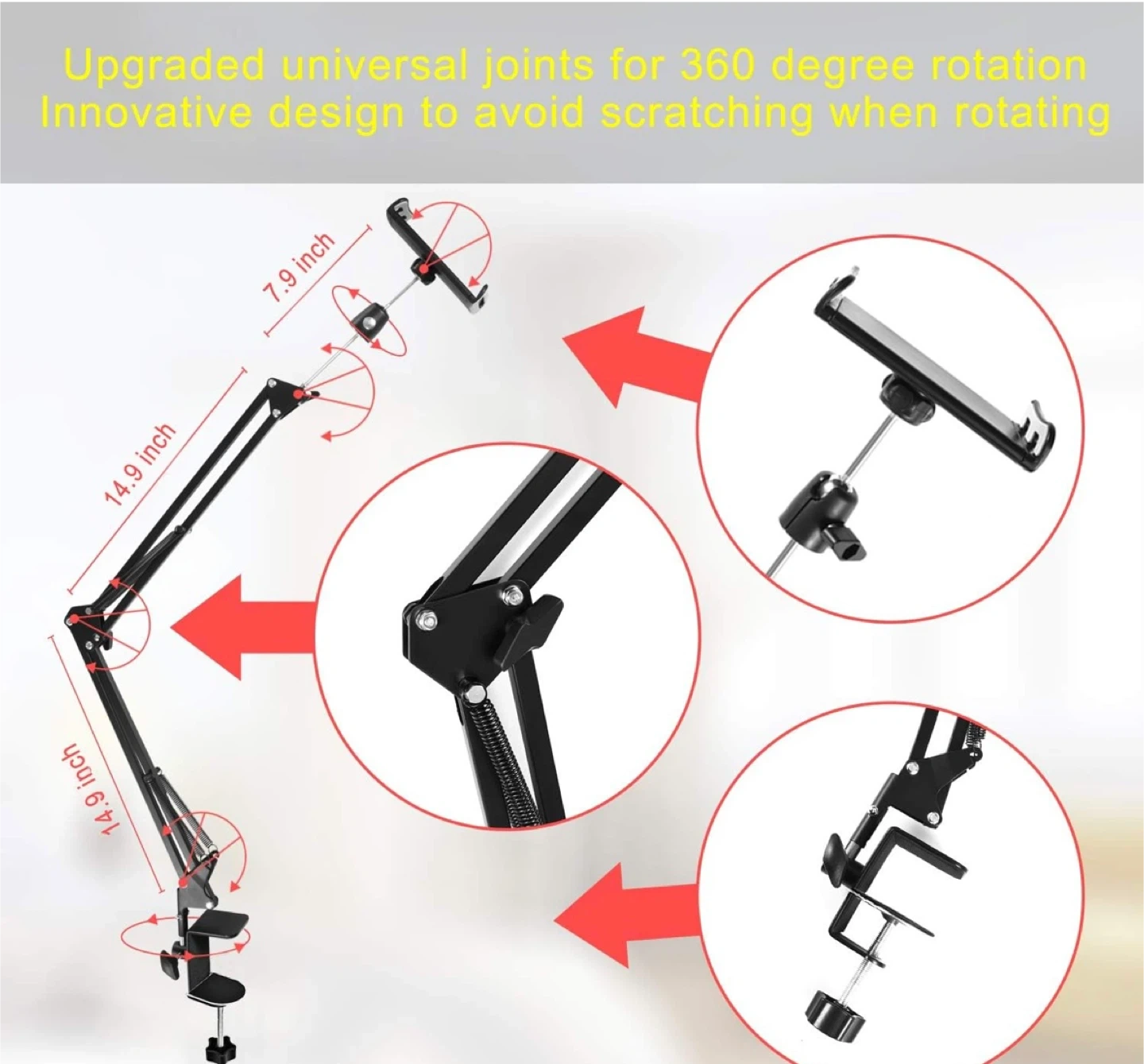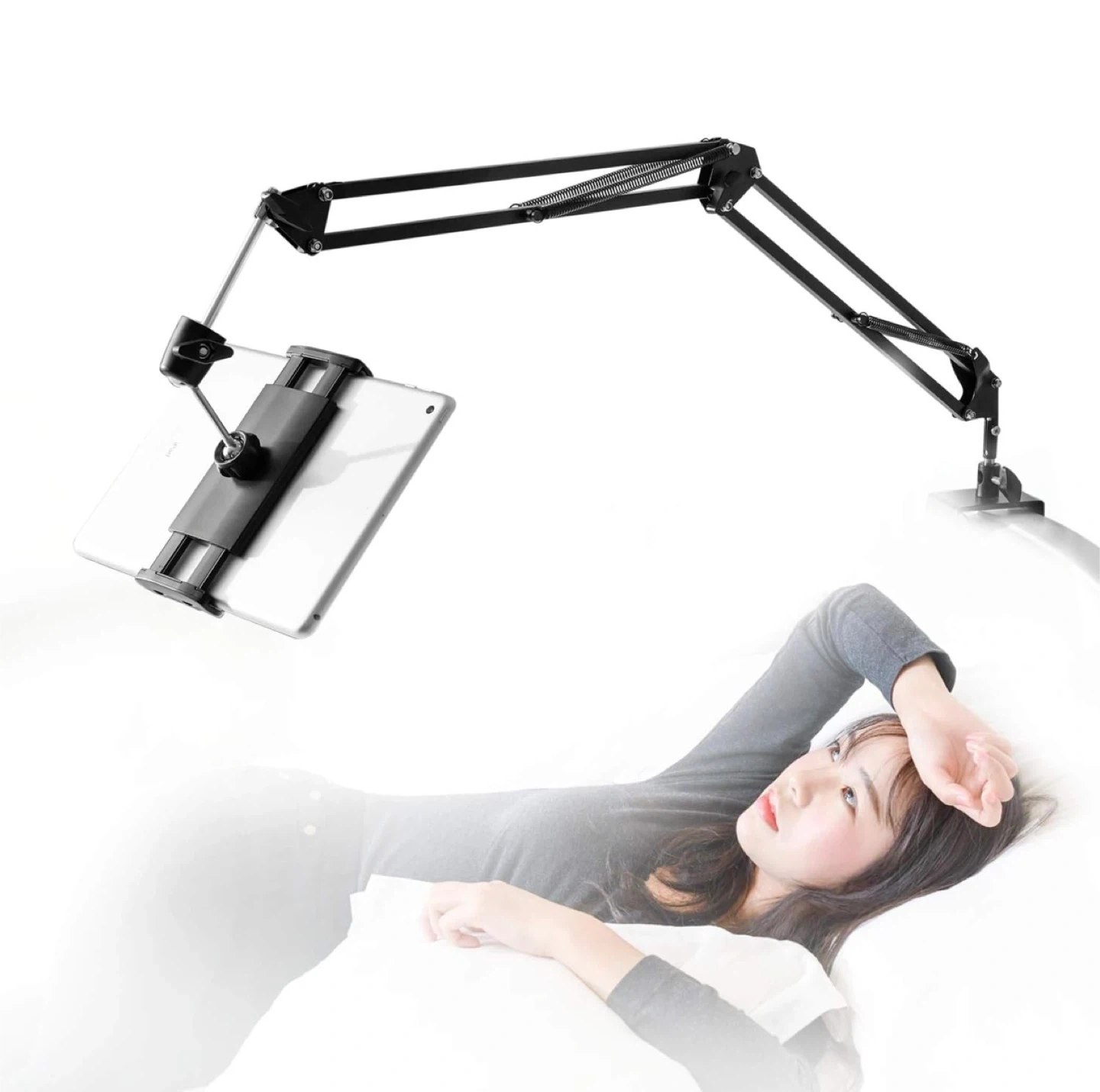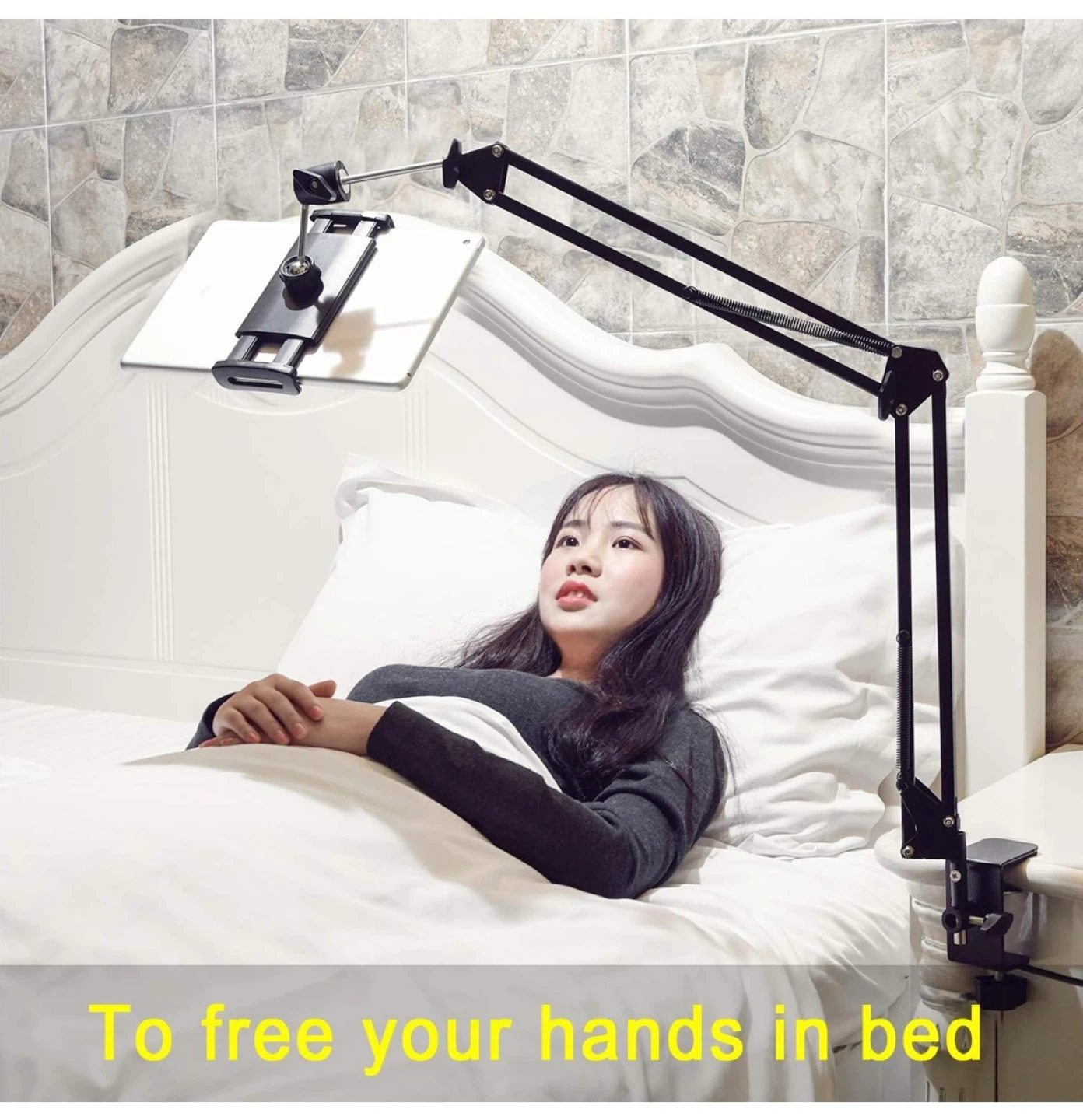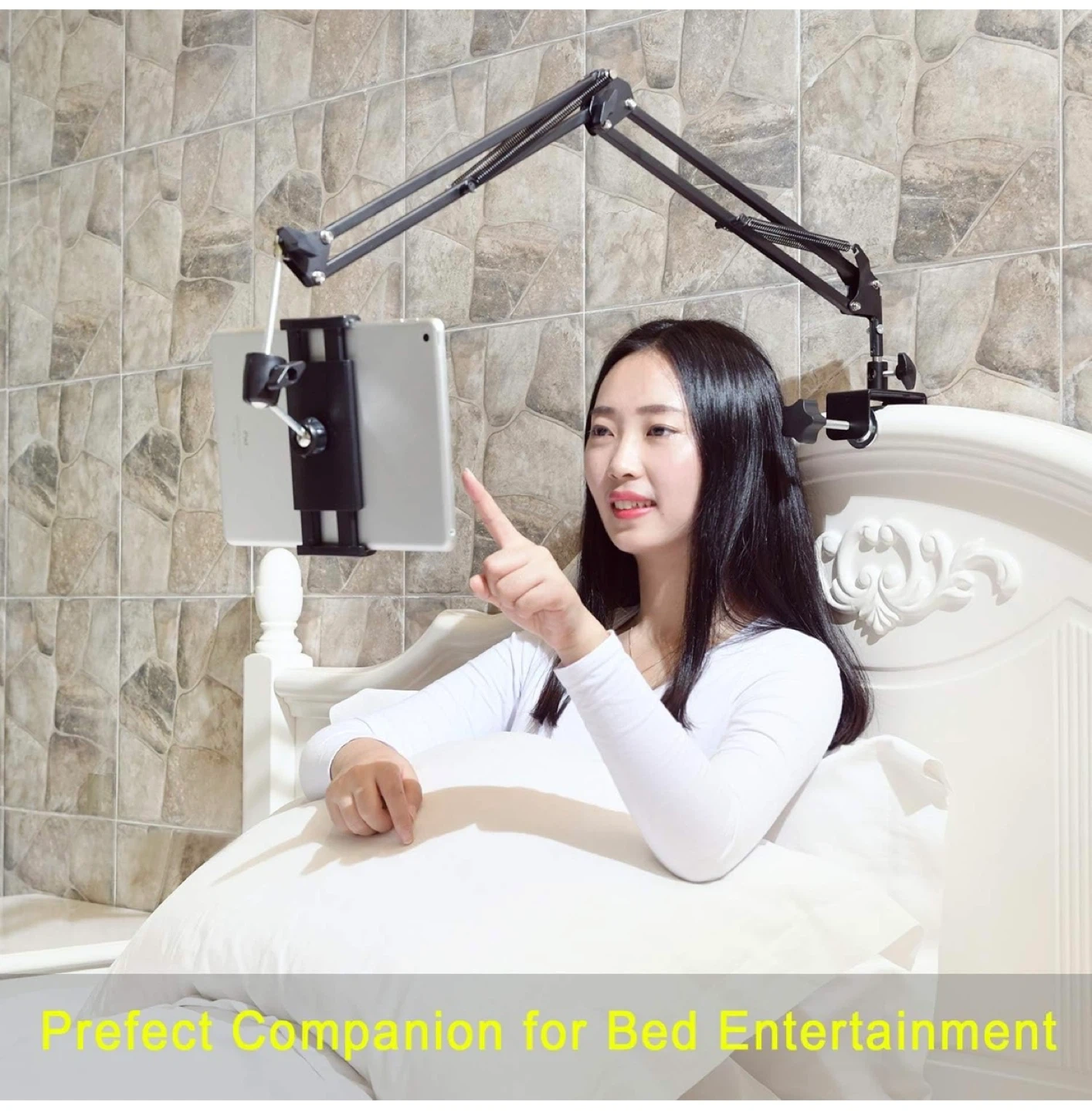 This adjustable tablet and phone bed mount is perfect for hands-free viewing! It features a high-quality metal tube, a fixed base clamp, and a high elastic spring for secure and flexible positioning. The support knob and 360° rotation universal joint allow for easy adjustments. It's suitable for 4-11 inch tablets, phones, and even a Nintendo Switch. Easy to install, no tools required! SAMHOUSING Tablet Stand for Bed,360 Degree Rotating Bed Tablet Mount Holder Stand with Aluminum Arm for iPad,iPhoneXS,N-Switch, Amazon Kindle Fire,or Other 4~11 inch Devices