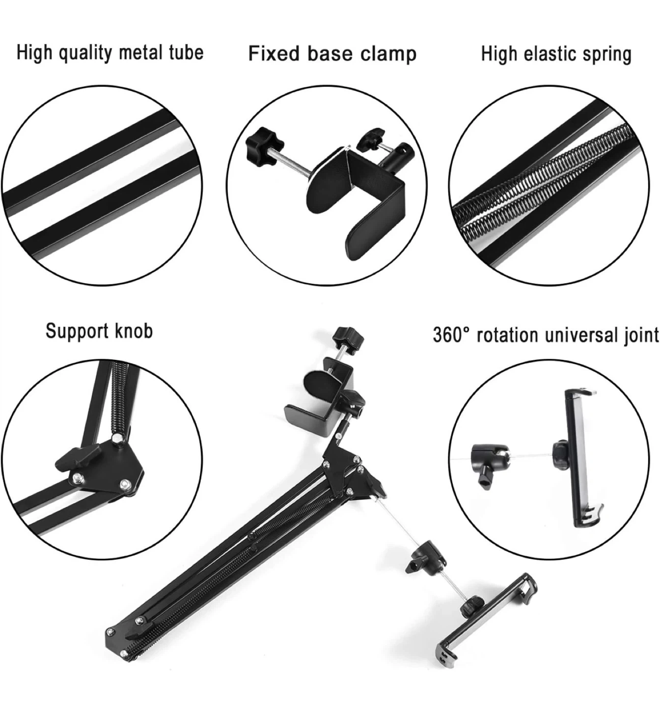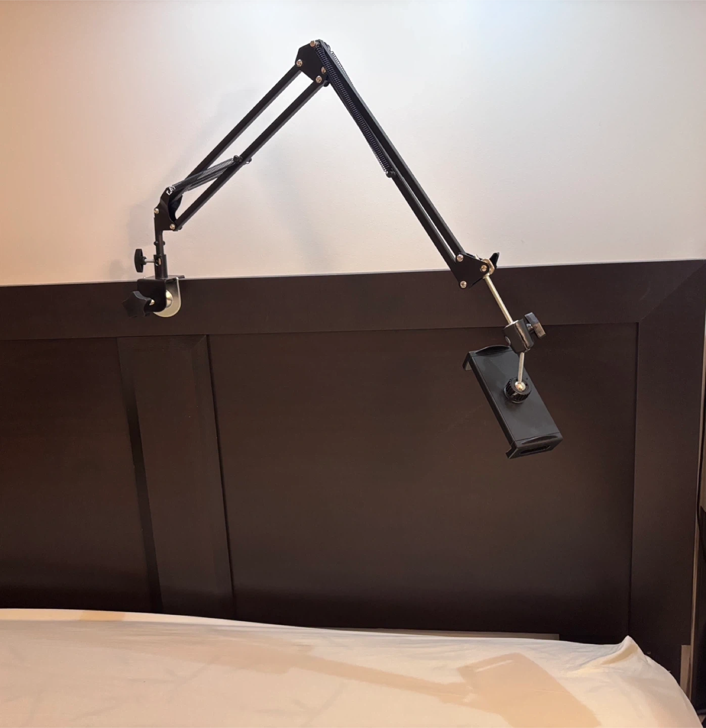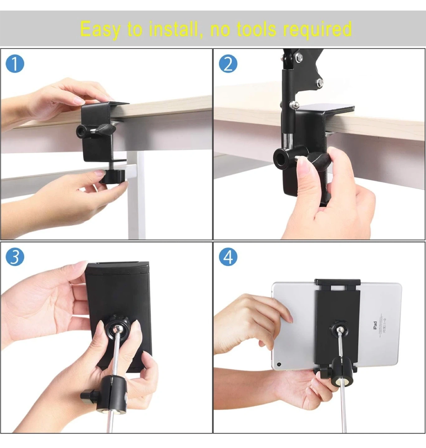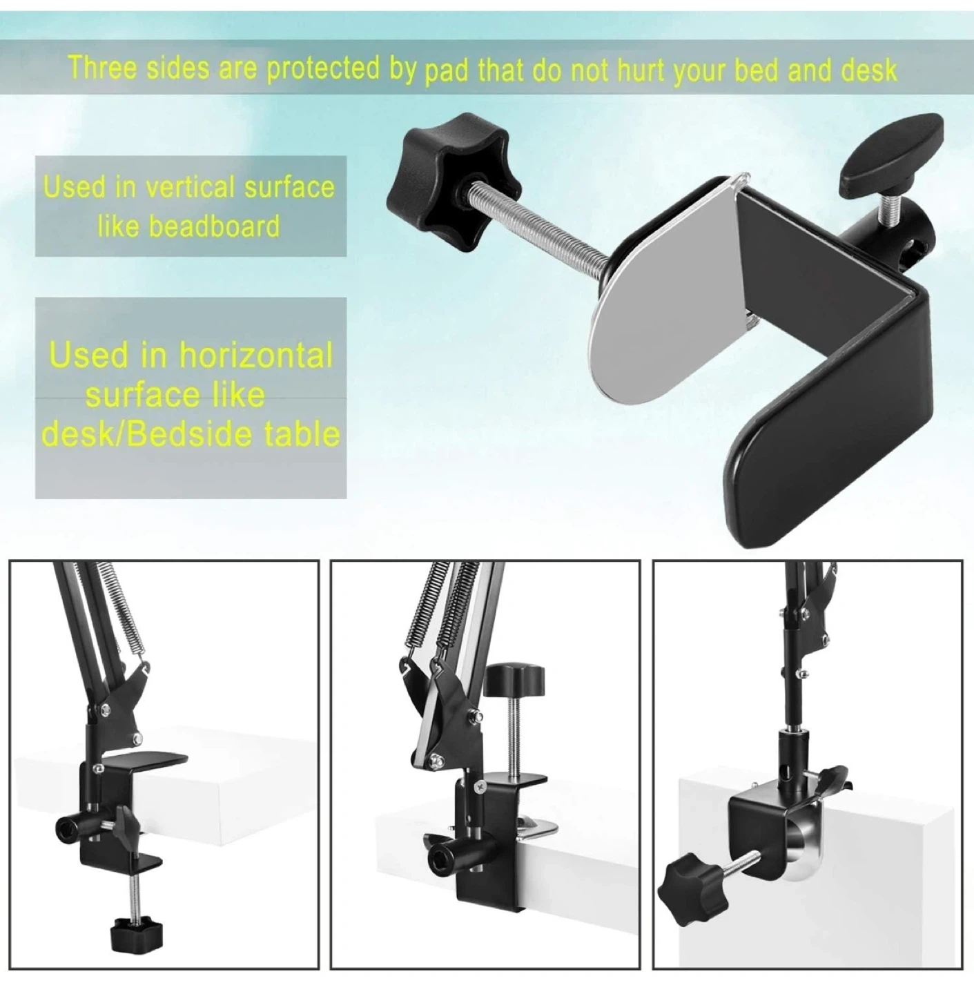 This adjustable tablet and phone bed mount is perfect for hands-free viewing! It features a high-quality metal tube, a fixed base clamp, and a high elastic spring for secure and flexible positioning. The support knob and 360° rotation universal joint allow for easy adjustments. It's suitable for 4-11 inch tablets, phones, and even a Nintendo Switch. Easy to install, no tools required! SAMHOUSING Tablet Stand for Bed,360 Degree Rotating Bed Tablet Mount Holder Stand with Aluminum Arm for iPad,iPhoneXS,N-Switch, Amazon Kindle Fire,or Other 4~11 inch Devices