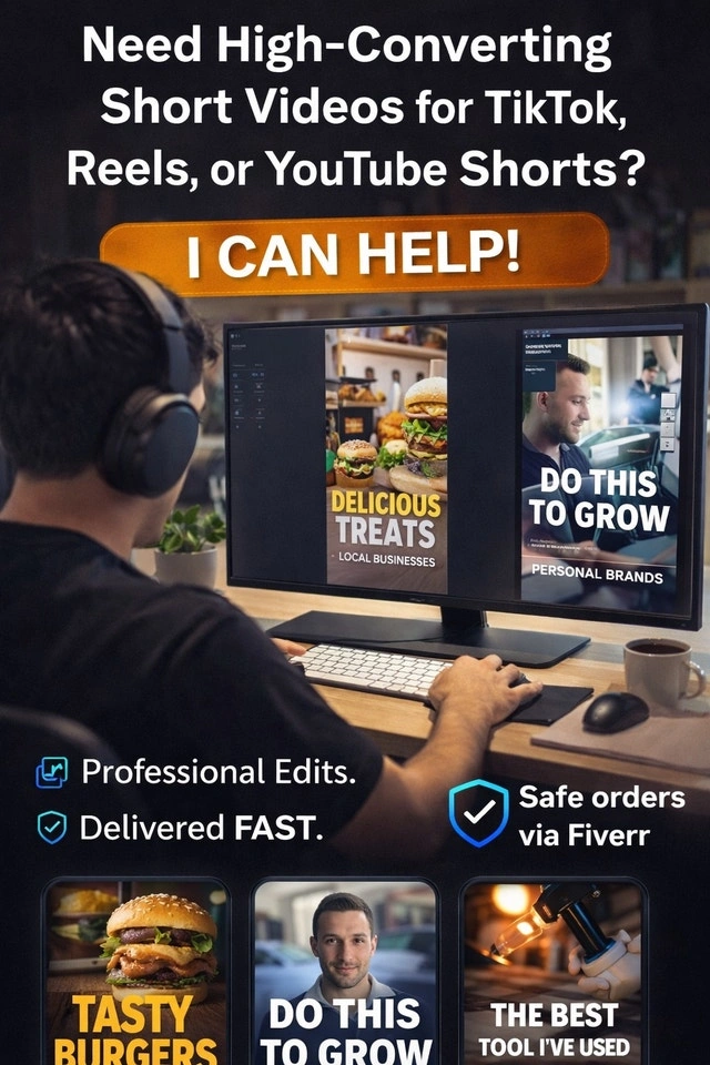 Order here before slots fill: https://www.fiverr.com/s/KeZKXdW for businesses that want results on TikTok, Reels, and YouTube Shorts. If you already have clips or an idea, I’ll turn it into a clean, professional, scroll-stopping short designed for attention and retention. Optimized for vertical platforms Built for businesses, brands, and creators. Only taking a few orders today to keep turnaround fast. First come, first served. Once today’s slots are gone, there gone.