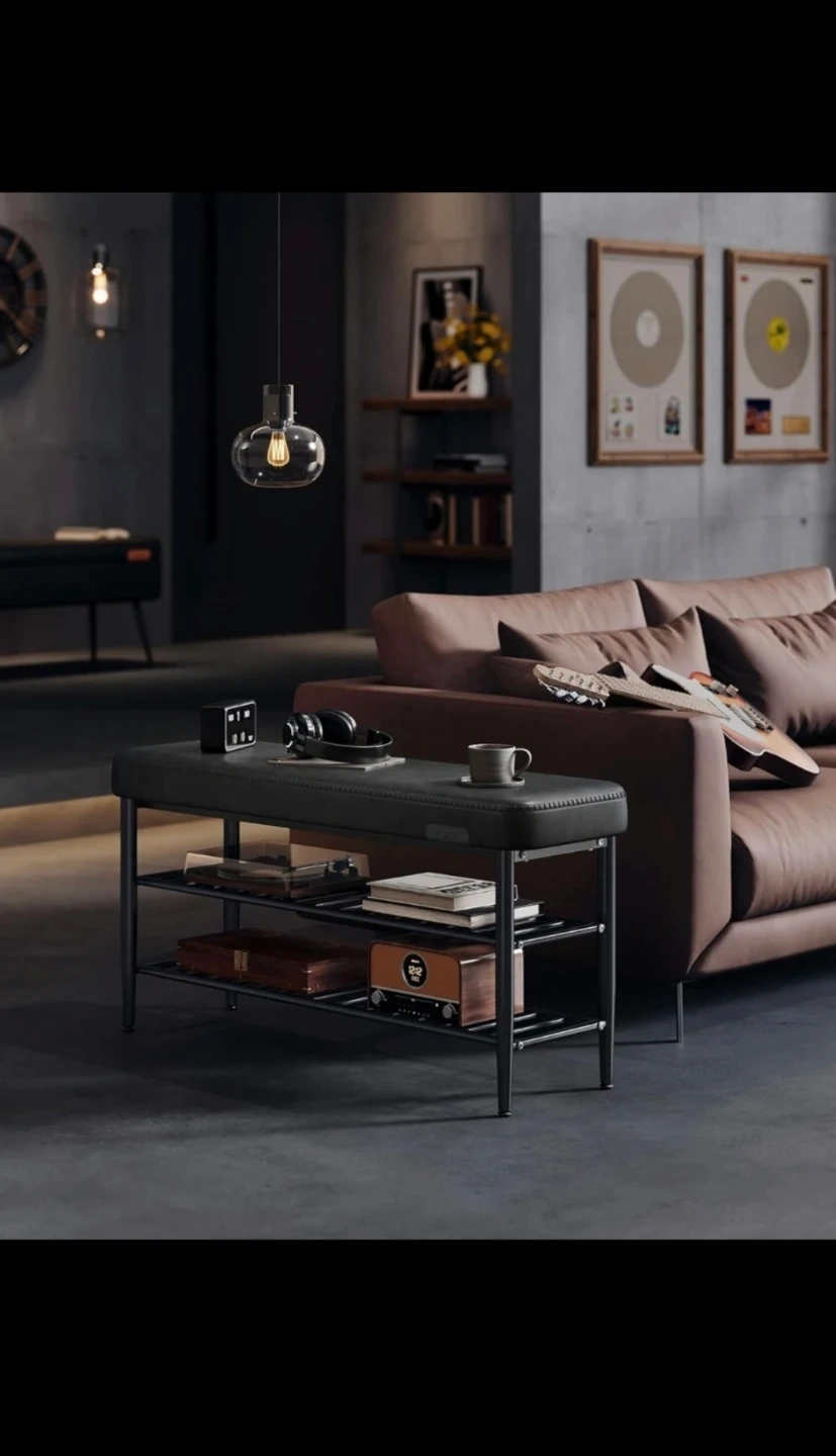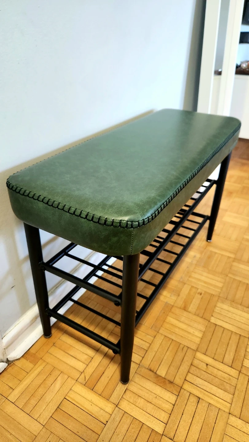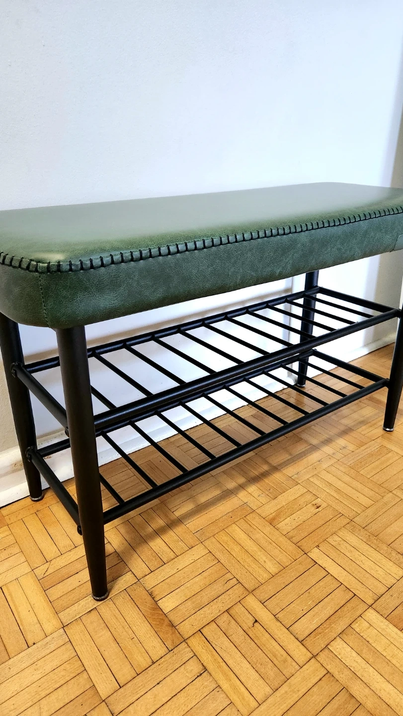This premium leather bench is brand new, elegant, high quality, and comfortable - has a padded leather seat and 2 shelves for storage. It's still in box, but I can assemble for extra $10. It's useful to put in the entryway, living room, or bedroom. The original price was $444 (save $$), so price is not negotiable. See dimensions and other features in the pictures.