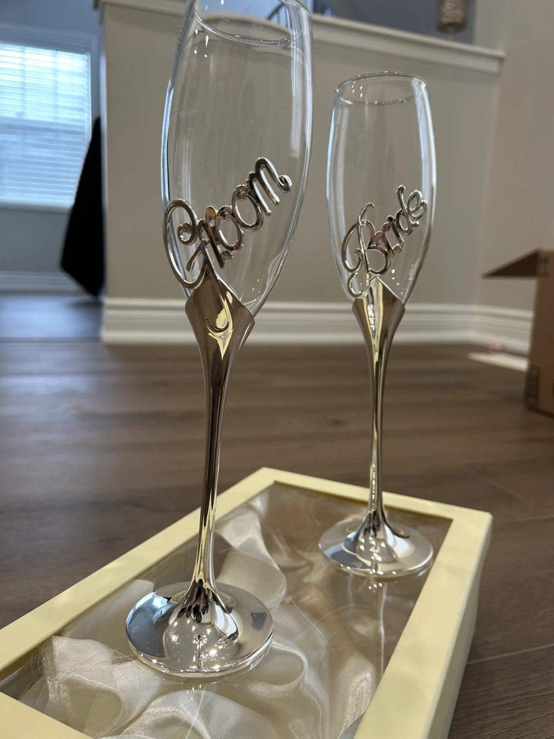 Buy & SellBride and Groom Champagne Flutes SetBride and Groom Champagne Flutes Set$10Set of two champagne flutes, one labelled 'Bride' and the other 'Groom', in their original box with satin lining.ConditionNewWHERE TO MEETSteeple Hill Shopping CentreView MapSELLERverifiedSamanthaWoodlands1539 reviews0 chats·0 favorites·3 viewsSEND CHAT TO SELLERHi Samantha! I’m interested in your listing.Hi Samantha! I’m interested in your listing.Get the Karrot app to chatSign In to chat
