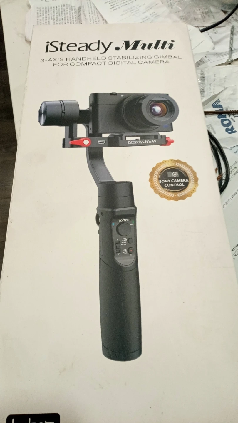 This is the Hohem iSteady Multi 3-axis handheld stabilizing gimbal, designed for compact digital cameras. It offers panning 600° rotation and a max payload of 400g. It's compatible with various devices, including digital cameras, smartphones, and action cameras.
