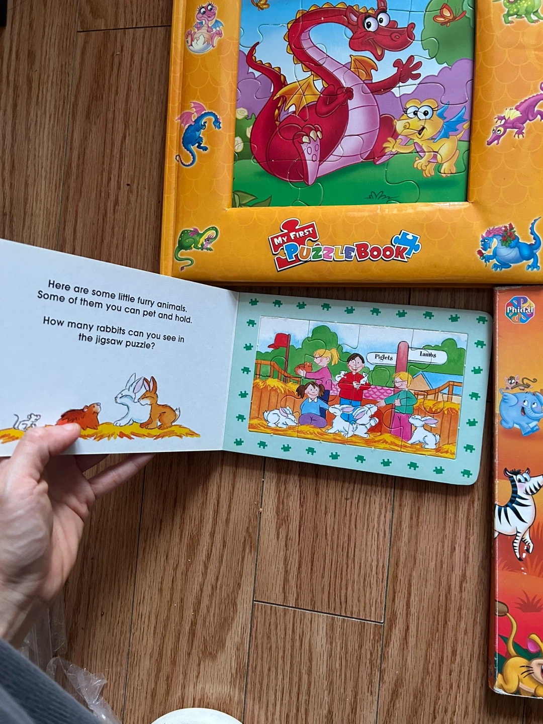 The Paw Patrols and The Magic Gragons and The Zoo are completely no pieces missing. The little people missing one piece. The Safari Friends missing two pages puzzles.