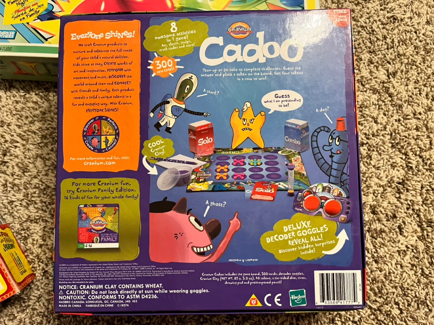 Here we have 3 board games for kids. Cranium Cadoo the acting, puzzling, sketching, sculpting, code-cracking game for kids, Get A Grip, and Cranium Ultimate Book of Fantastic Fun & Games.