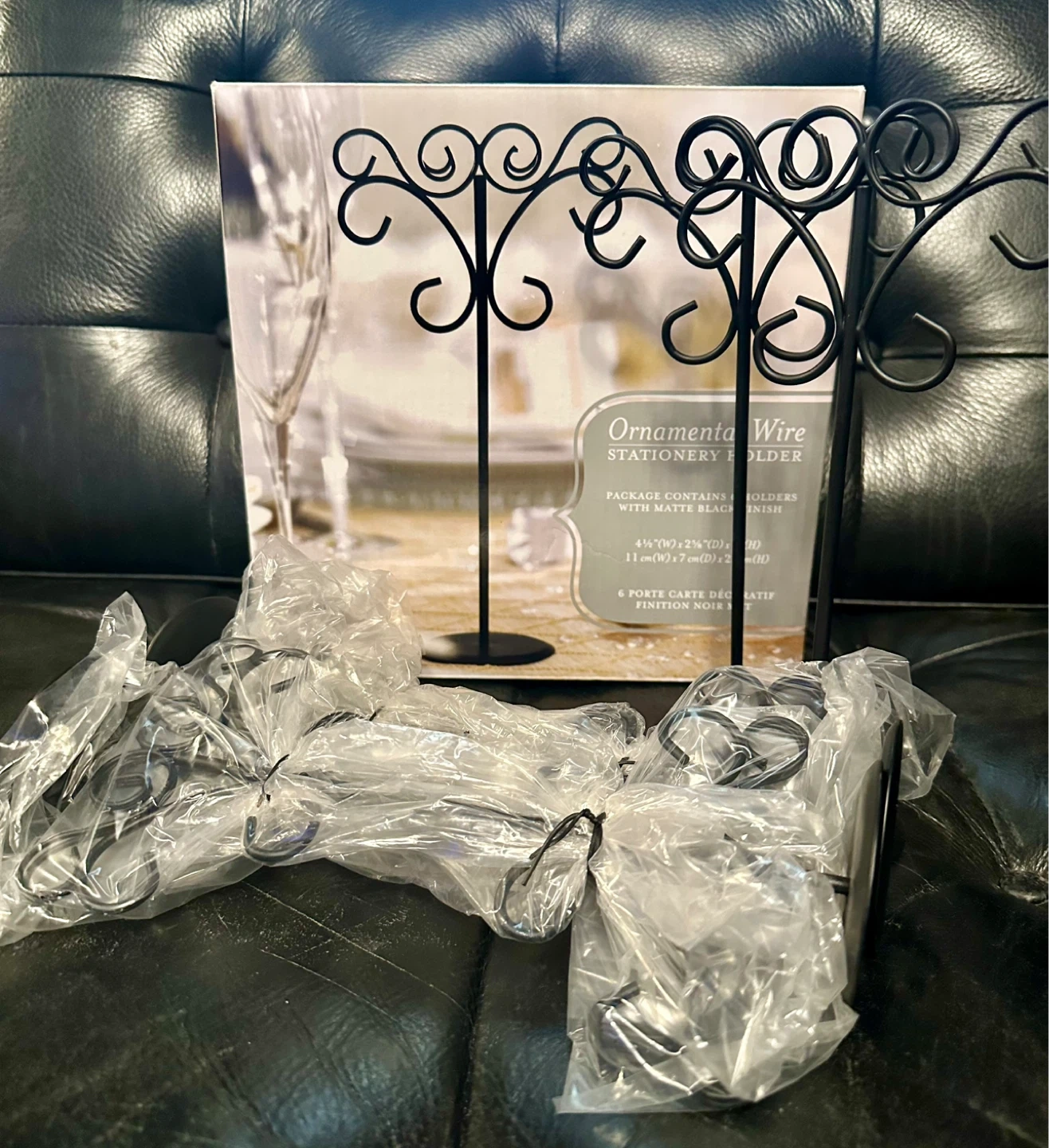 Add elegance to any table top display. Use with table numbers, menu cards, table greetings, photographs or any other form of stationery that requires a little prestige. Made of wire with matte black finish. You could dress it up by adding miniature crystal drops (not included) to dial up the glamor!