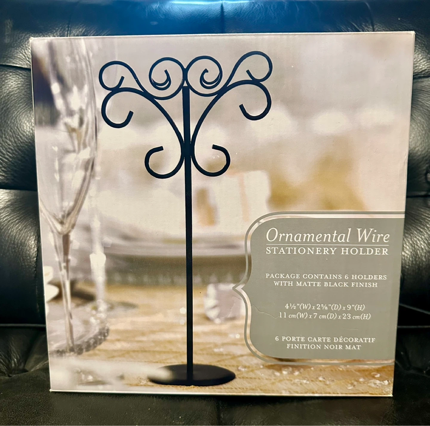 Add elegance to any table top display. Use with table numbers, menu cards, table greetings, photographs or any other form of stationery that requires a little prestige. Made of wire with matte black finish. You could dress it up by adding miniature crystal drops (not included) to dial up the glamor!