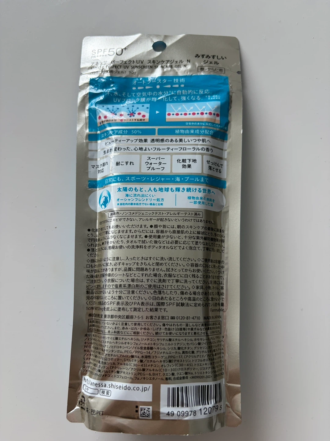 This Anessa sunscreen gel offers high UV protection with SPF50+ and PA++++. It's designed to provide a radiant finish while protecting your skin. The formula is water-resistant and suitable for daily use.
