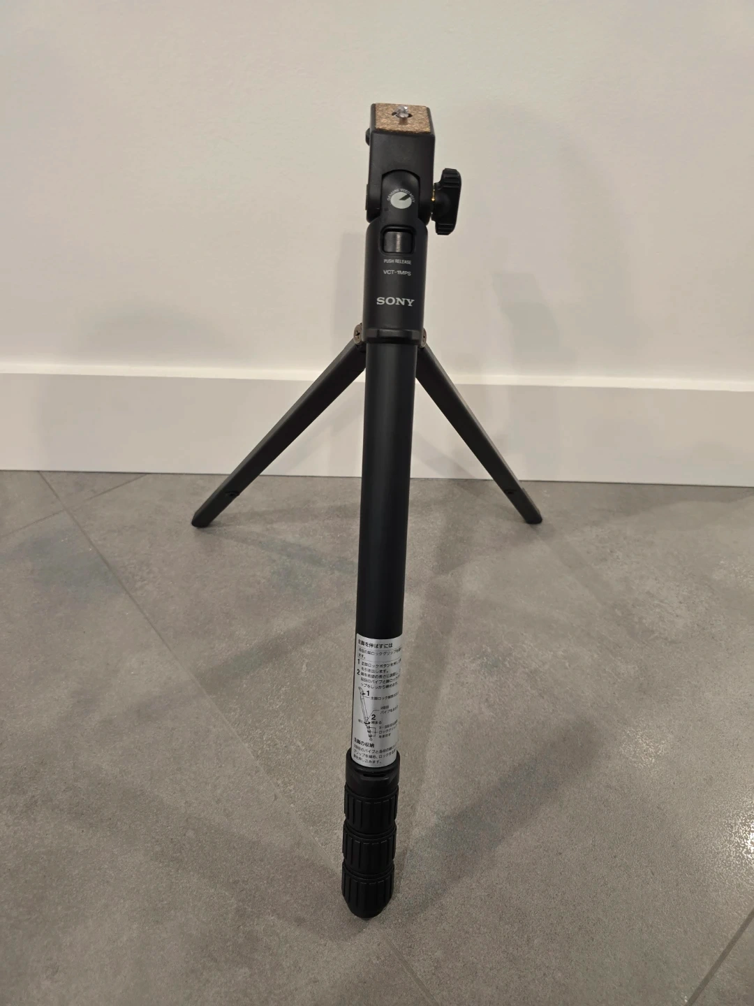 Excellent condition Sony VCT-1MPS Multi-Pod. This is a highly versatile and lightweight camera support, perfect for travel, vlogging, or steadying your shots in tight spaces. It functions as a height-adjustable monopod and features a built-in foldable tripod base for extra stability.