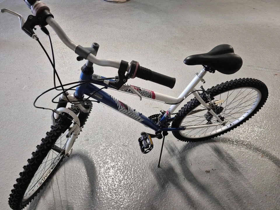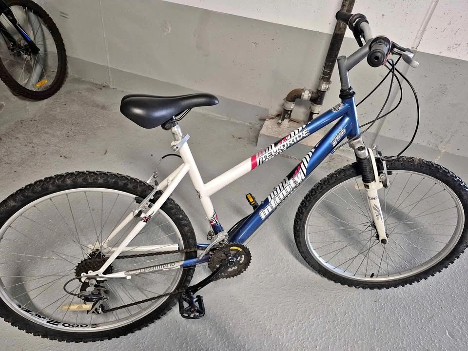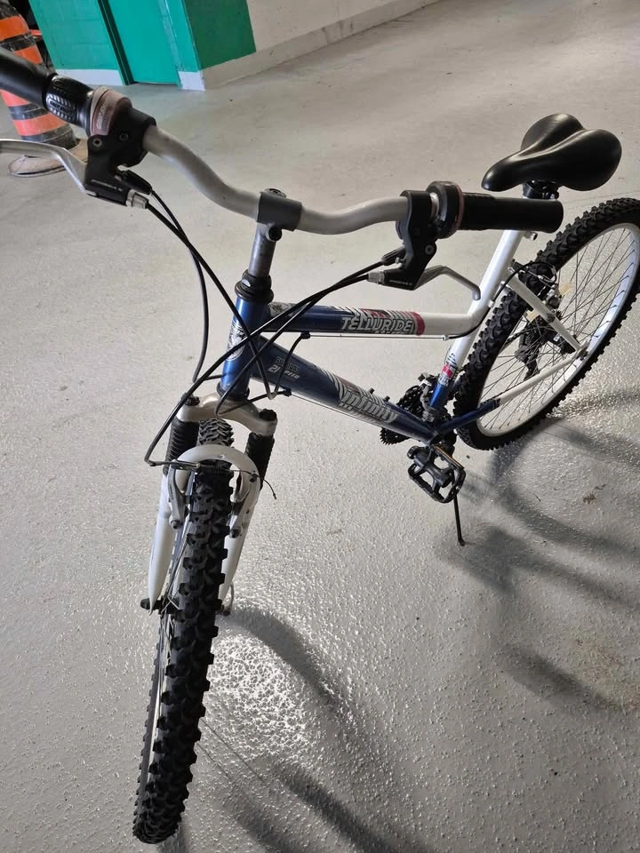 Infinity Telluride. This bike is too big for me after I bought it off someone else. I've never rode it myself. Size M or L. Tires hold air, brakes are there. Pickup cash only in Alton Village, Burlington.
