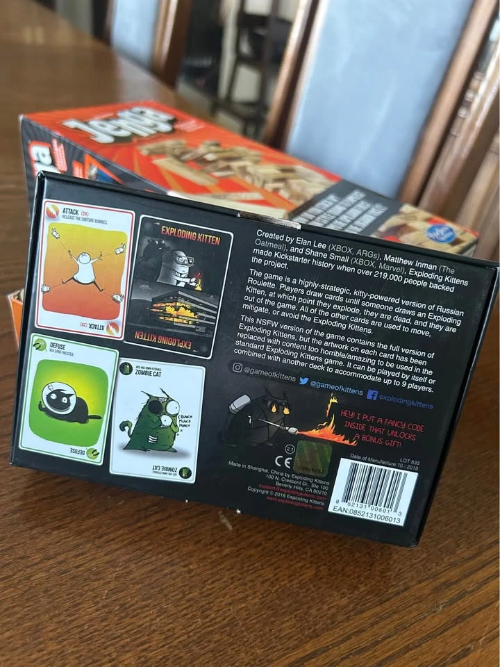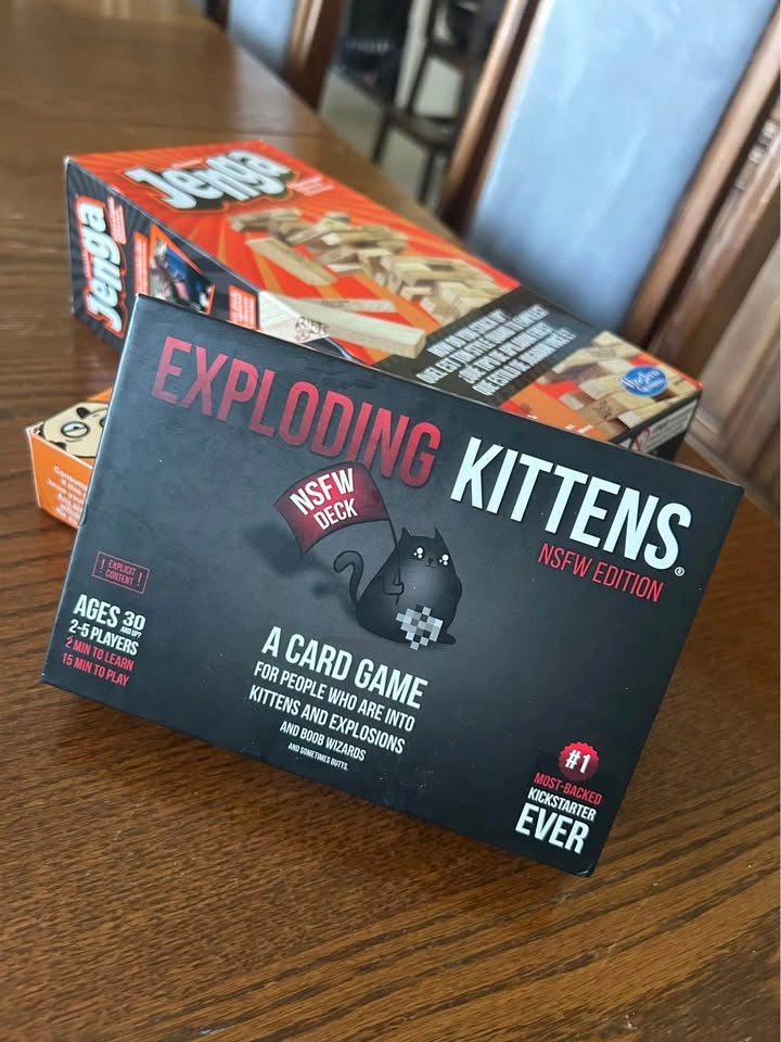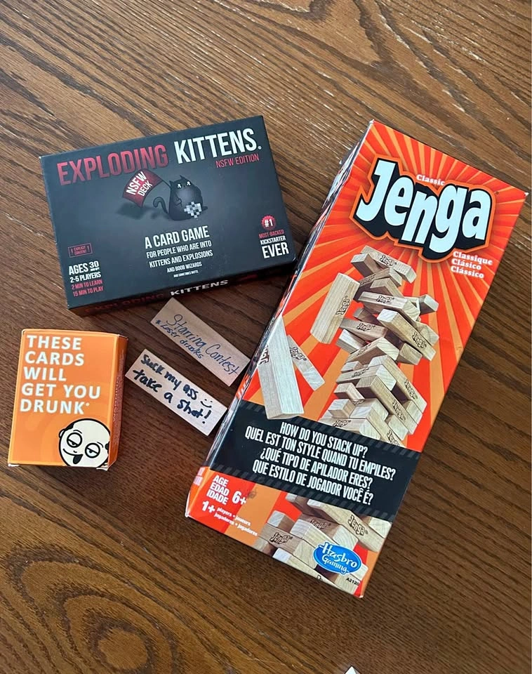 $10 for all 3. All in good condition, basically new. The Exploding Kittens game has an expansion pack called “Streaking Kittens” included. 2/3 are drinking games, although Jenga could be played without the alcohol. Have Fun!