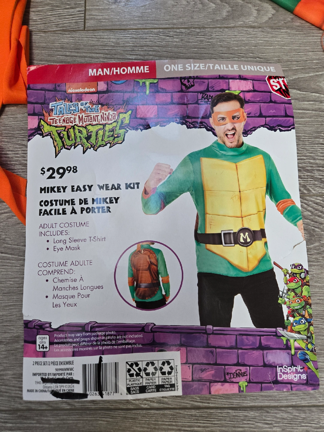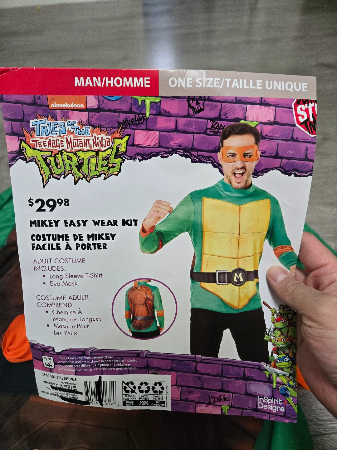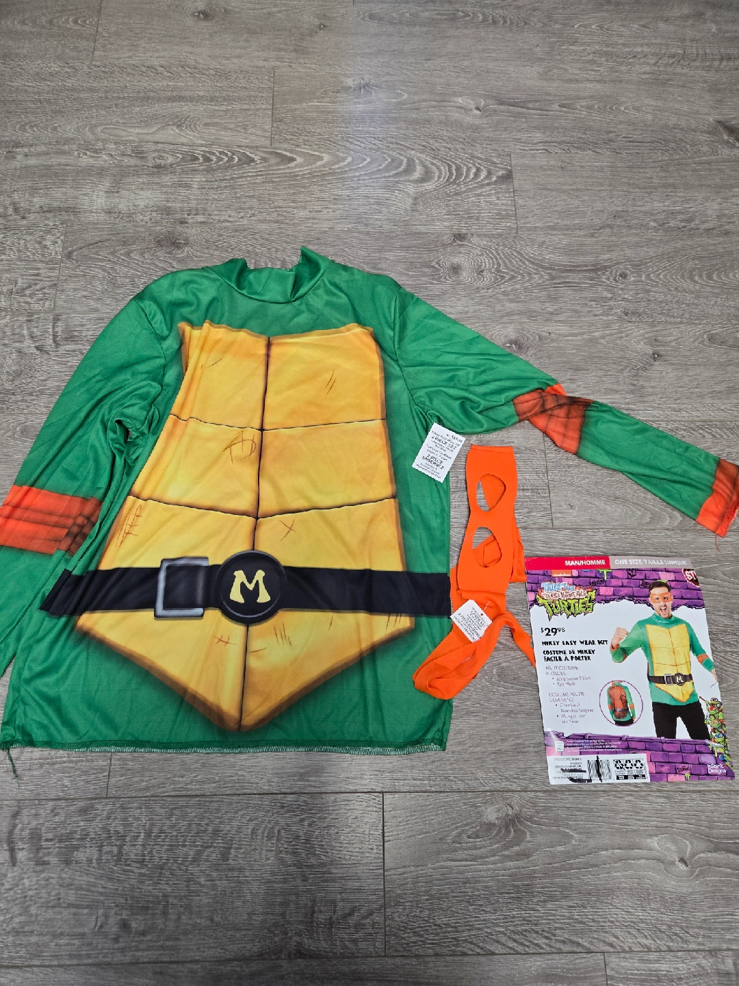Brand new tmnt adult one size Michelangelo halloween costume shirt and bandana. Please note there's a cosmetic imperfection on the bandana Pick up near 22nd skytrain new west
