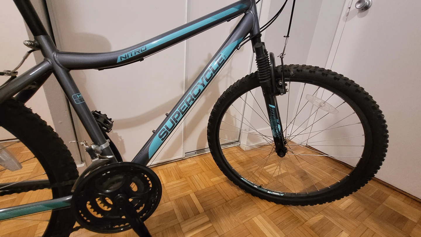 109Hello! We are selling our Super Cycle Nitro as we are moving to Calgary soon! It is in absolute mint conditon with not a single damage or issue. Purchased: 2020 from Canadian Tire. Very lightly used Rust free Hard Tail Mountain Bike Wheel Size: 26 inches Absolutely Comfort Bike Current Price at Canadian Store is $240 plus taxes, you could see it in 1 of the image. Please let me know if you have any questions