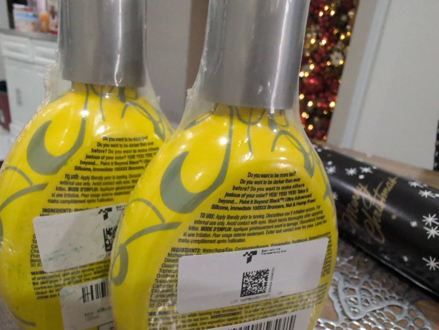 Selling a bottle of Paint It Black Beyond Black tanning lotion. It's an auto-darkening, silicone-based lotion with 100XXX ultra extreme hemp. The bottle contains 13.5 US fl oz (400mL).