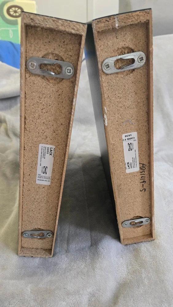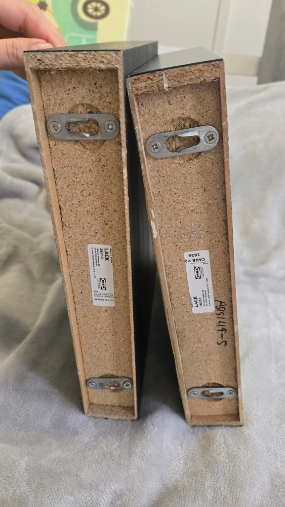 Selling 3 IKEA Lack wall shelves in black. They're perfect for adding a sleek and modern touch to any room. There are some minor scratches on the surface, but otherwise they're in good condition.