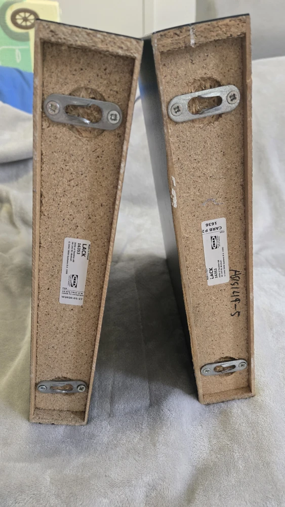 Selling 3 IKEA Lack wall shelves in black. They're perfect for adding a sleek and modern touch to any room. There are some minor scratches on the surface, but otherwise they're in good condition.