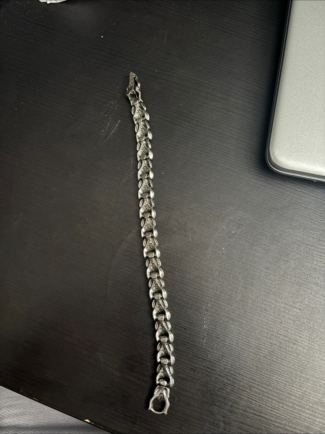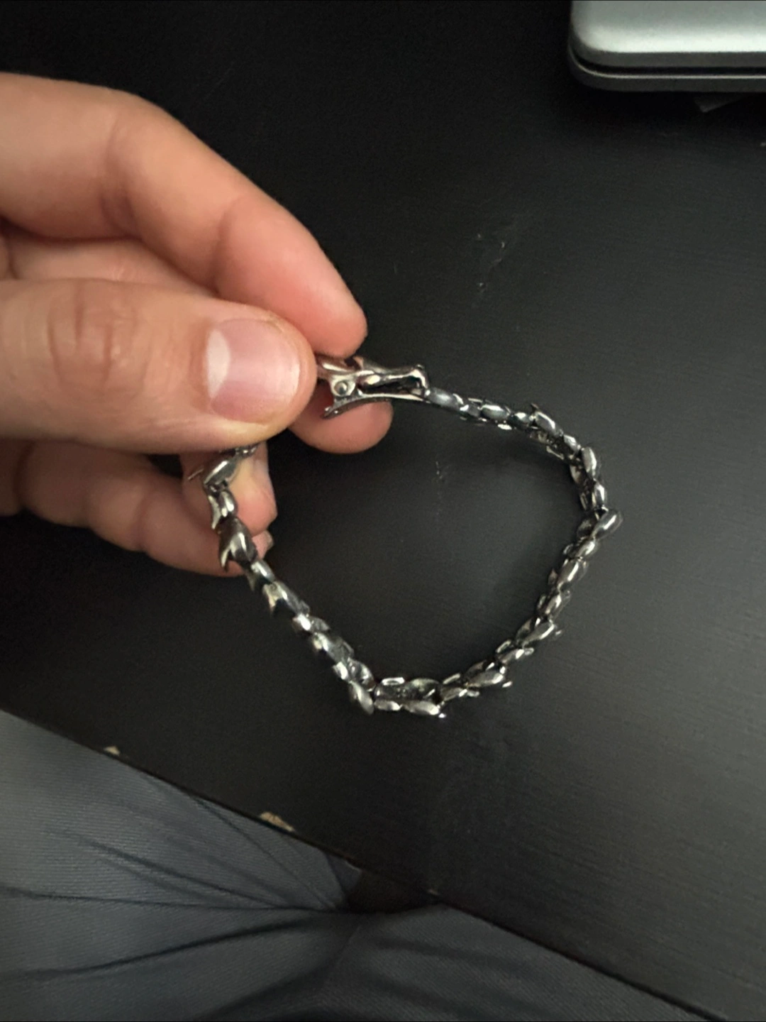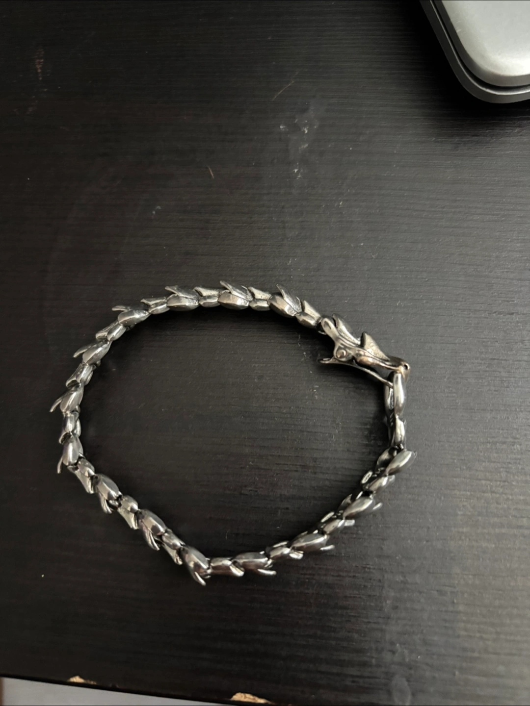 Cool dragon style silver bracelet! It's in great condition and has a unique design. Perfect for adding a bit of edge to your style. Made from real silver . S925 pure silver . Very easily to attach-detach .