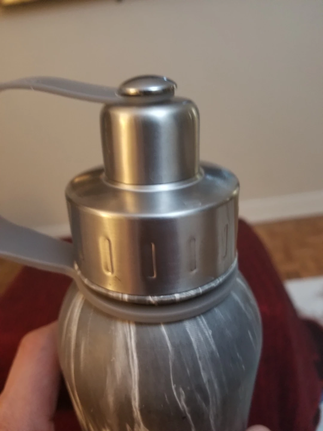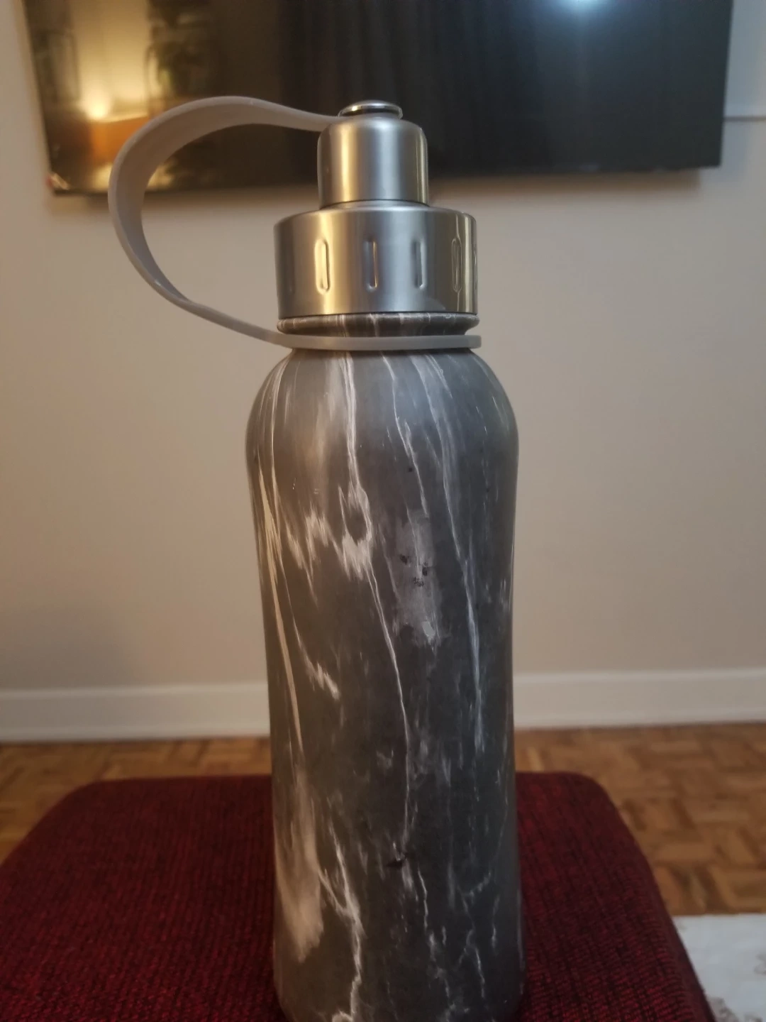 PureHydration reusable water bottle with a stylish grey marble design. It's 800ml capacity is great for staying hydrated. Stainless steel cap and carrying loop included. Pre-owned with good condition.
