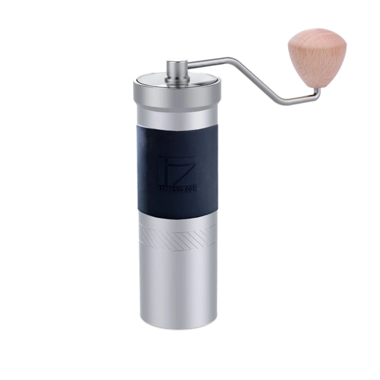 This C2 MAX coffee grinder features a stainless steel body and an anti-slip rubber grip. It has a high-quality burr for consistent grounds. The crank handle includes a smooth wooden knob for easy operation. Perfect for grinding beans for your favourite brew!