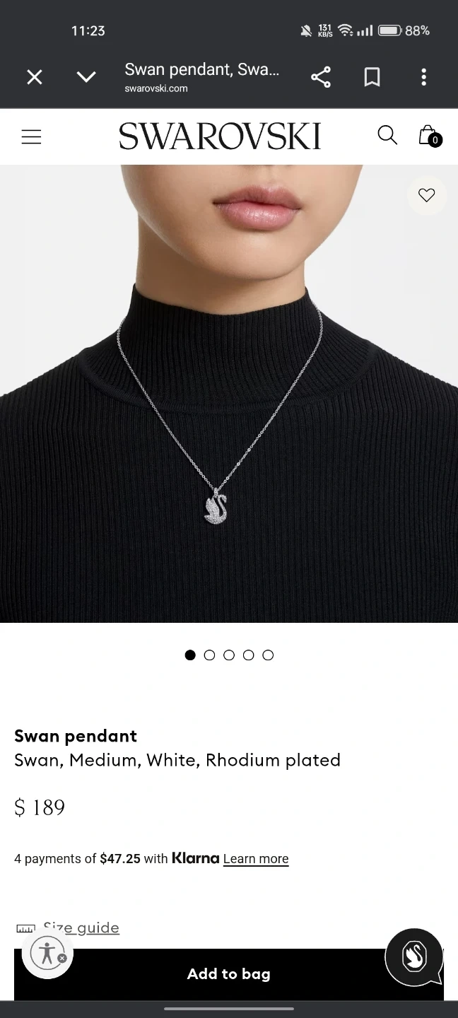 A Swarovski Swan pendant necklace.. It's rhodium plated and white. This necklace is a classic piece for any occasion!