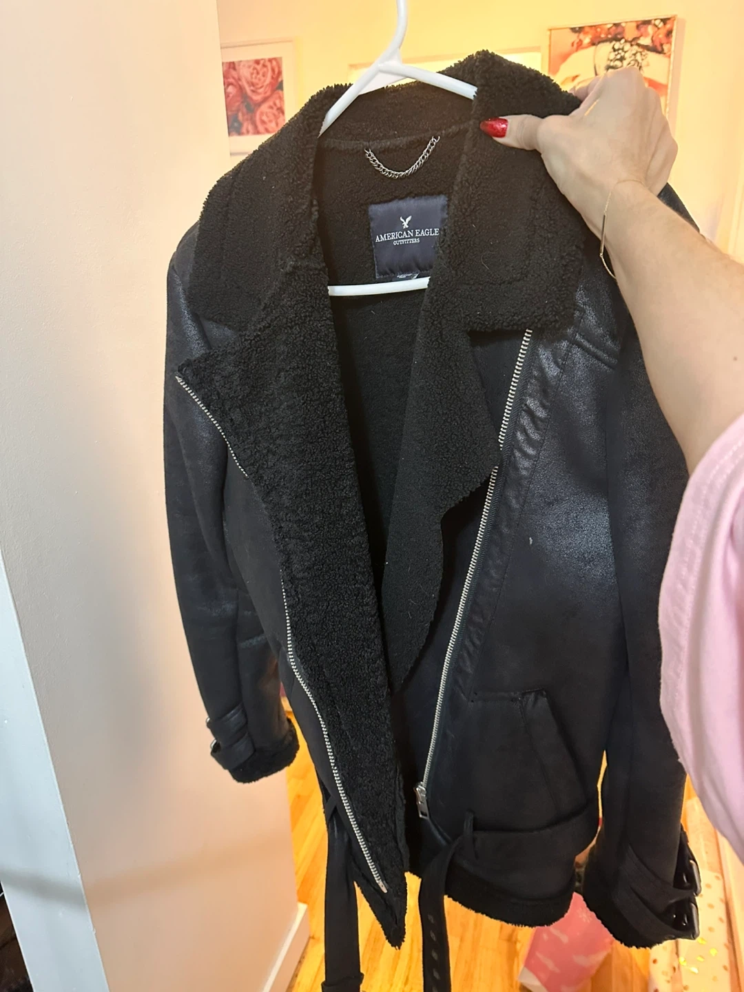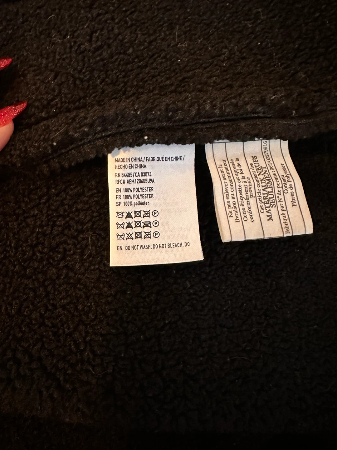 It's made of 100% polyester and features a cozy faux fur lining. Medium size.