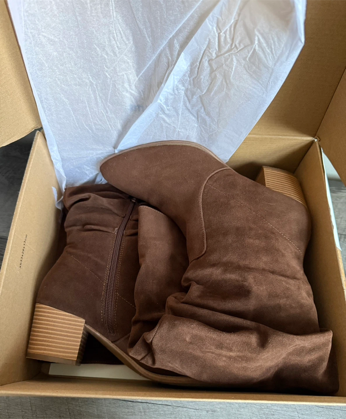 These ruched slouchy boots come in a Dark Toffee Brown colour. They feature a block heel and a pointed toe. Include original box.