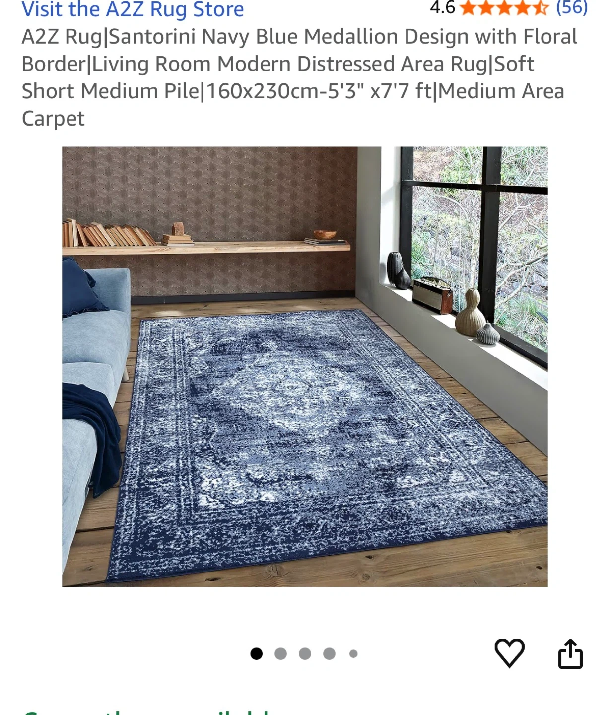 Selling an A2Z Rug with a Santorini Navy Blue Medallion design! This modern distressed area rug is perfect for a living room. It features a soft, short medium pile and measures 160x230cm, which is 5'3" x 7'7"