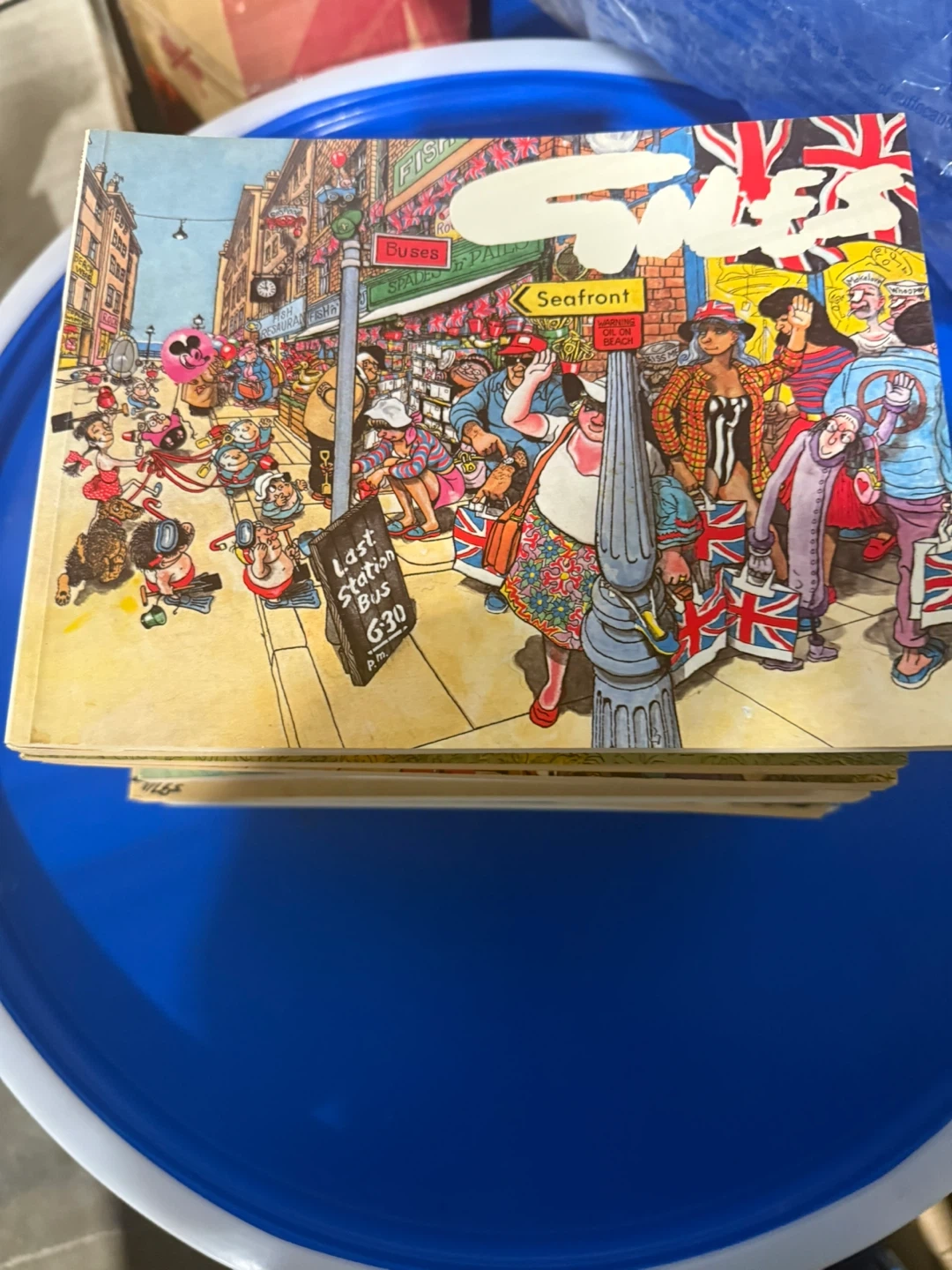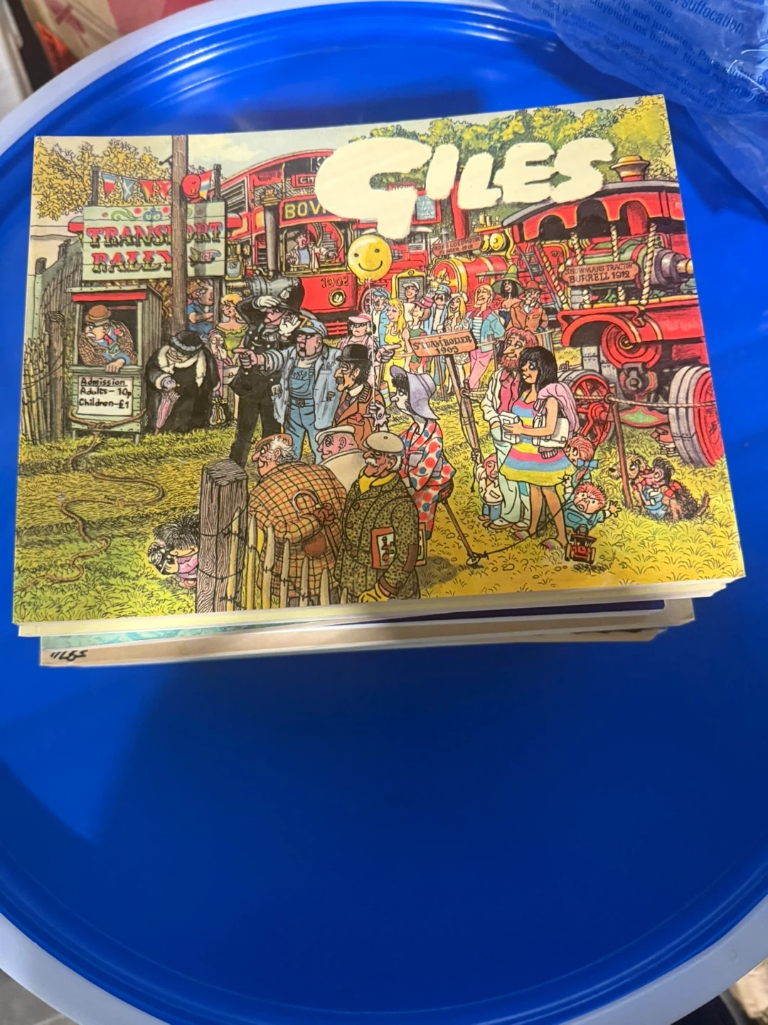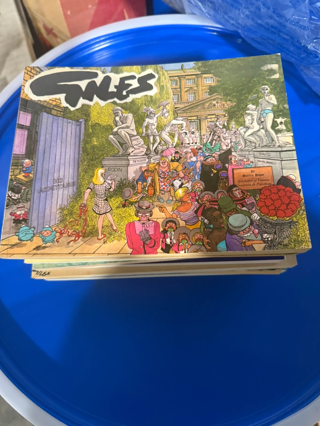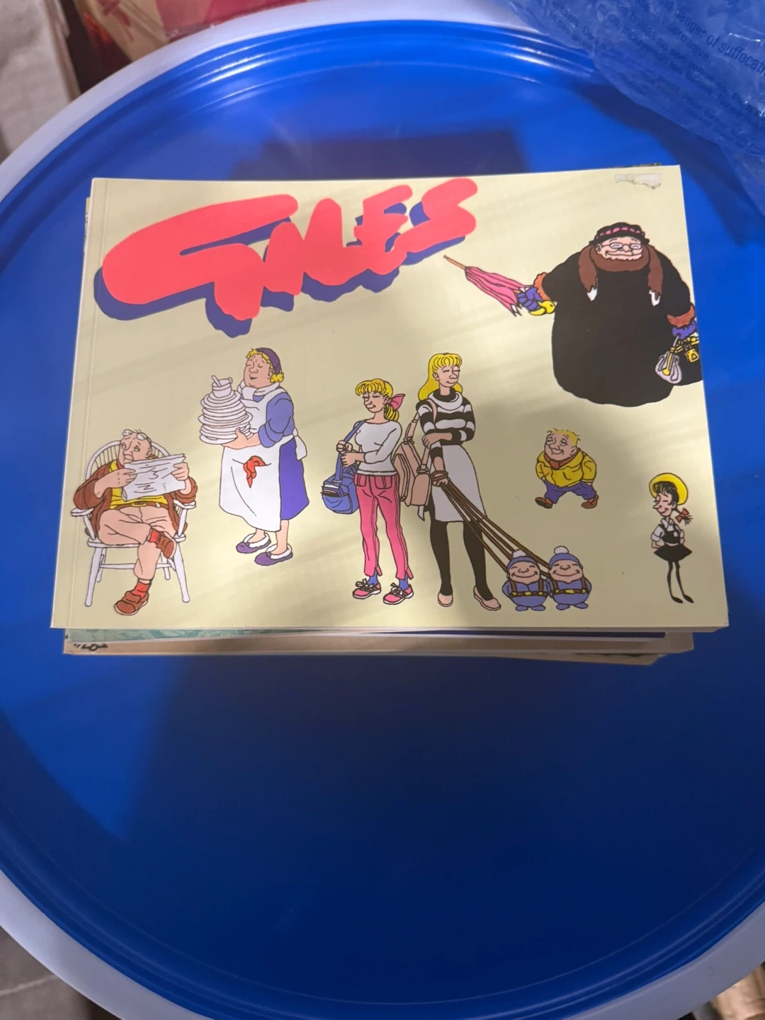 $10 each This is a collection of Giles comic books, featuring humorous British cartoons. They're great for fans of classic comic strips. The books showcase a unique art style and witty observations of everyday life.