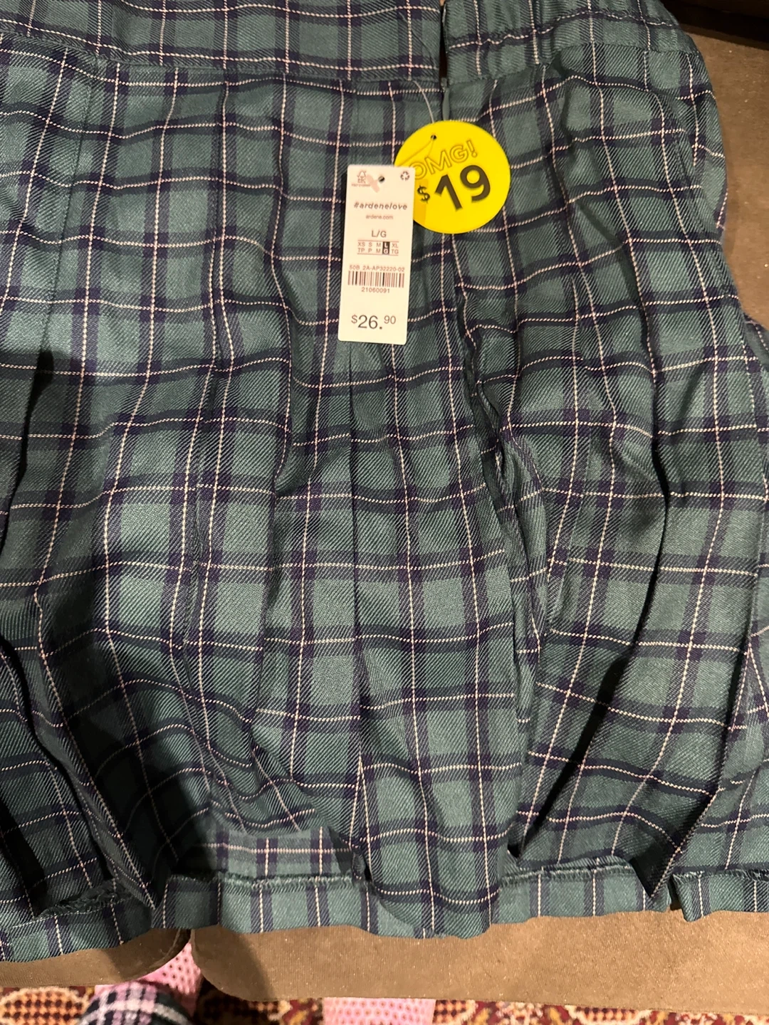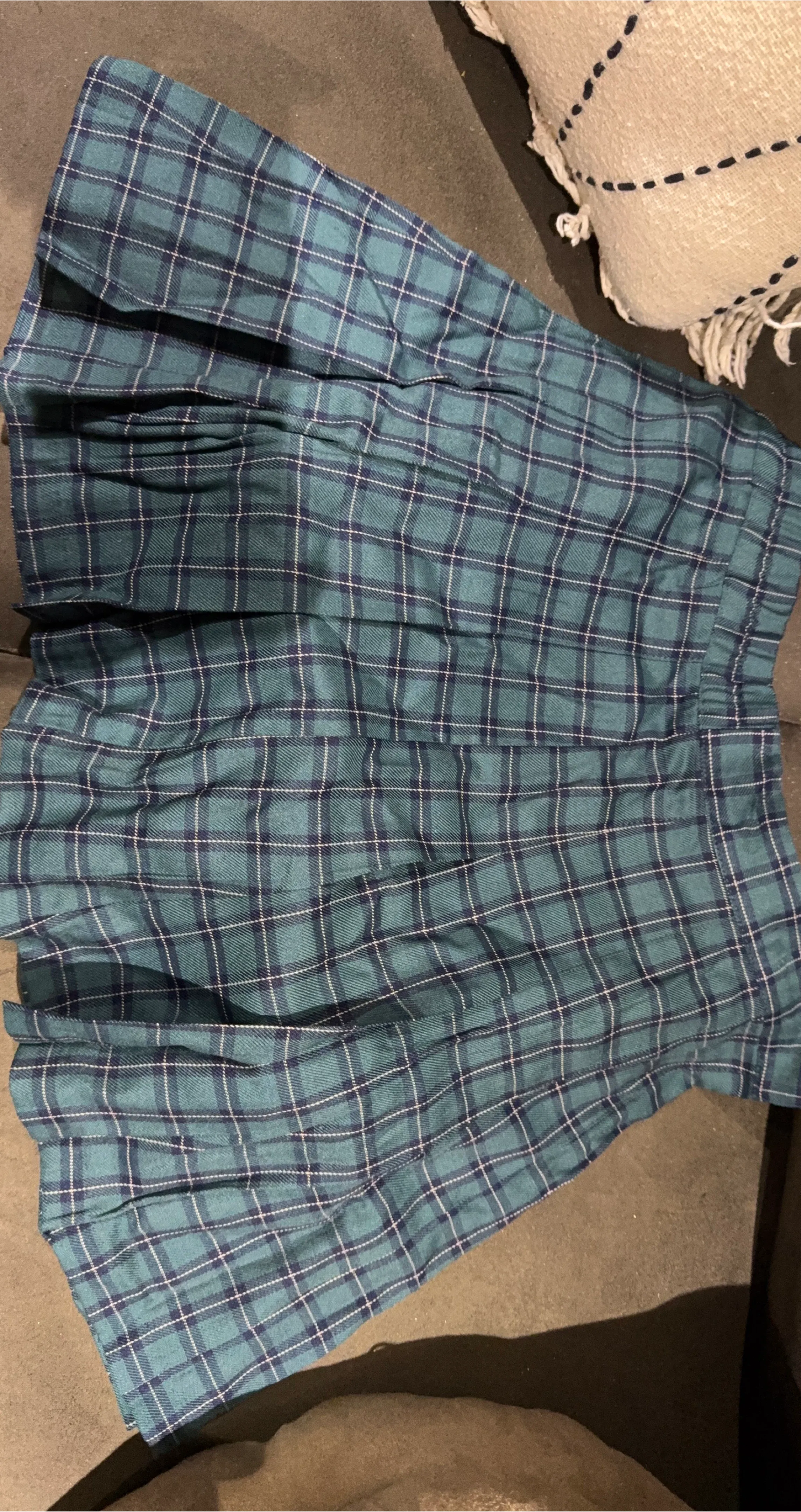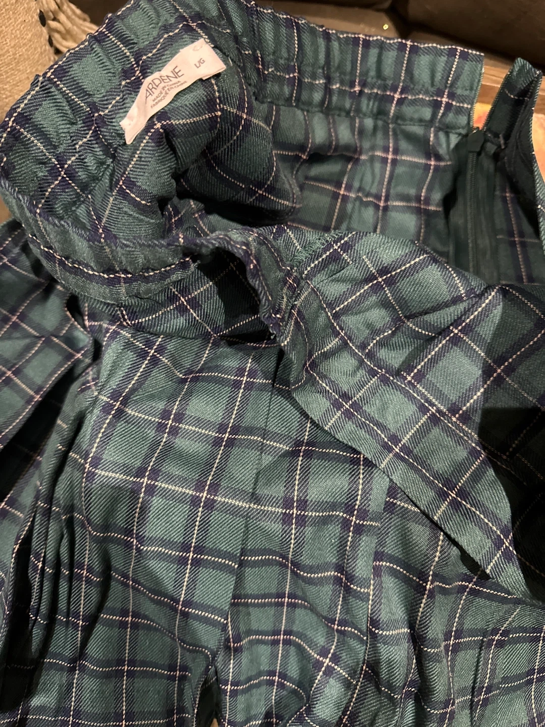 Selling an Ardene plaid skirt in size L/G. It's a cute green and navy plaid pattern, perfect for adding a bit of style to your wardrobe! The original price was $26.90.